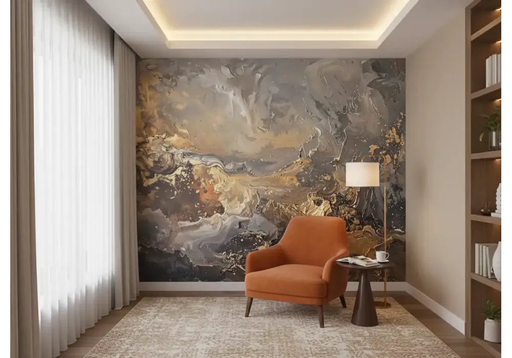 Deep mineral textures inspired by geology create sophisticated abstraction suited for minimalist int..