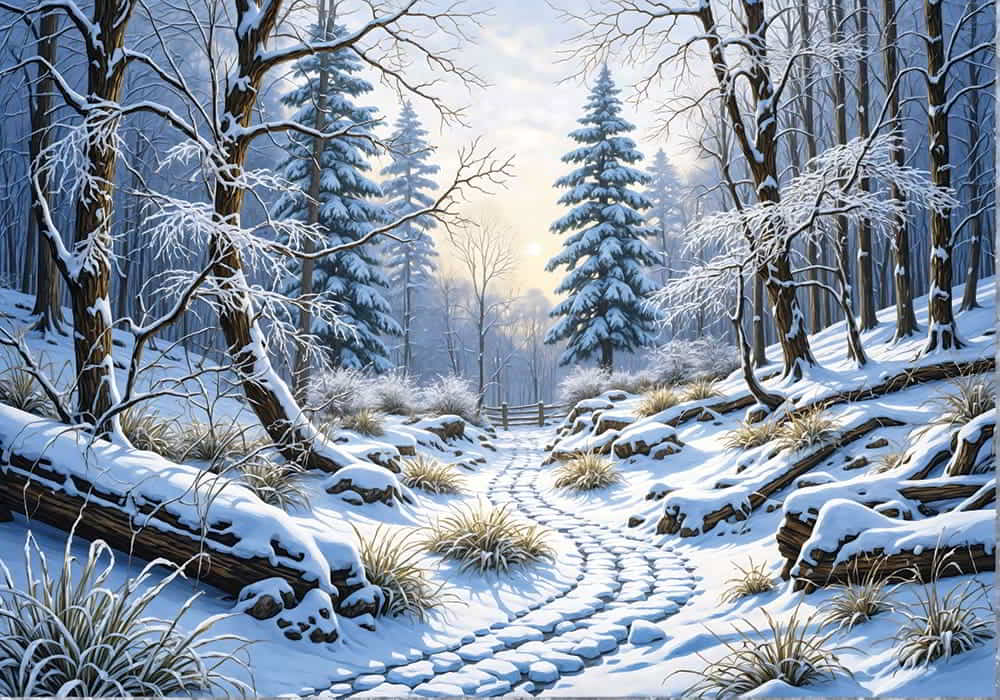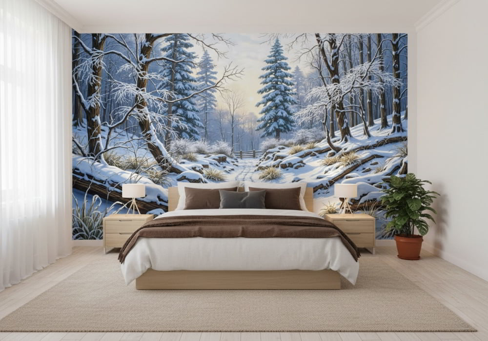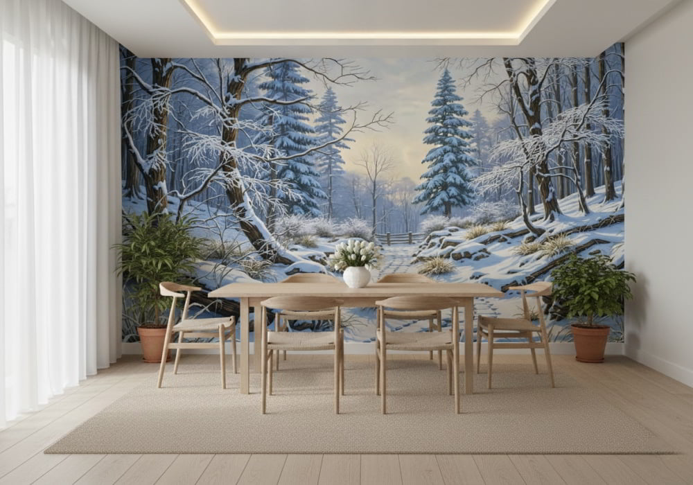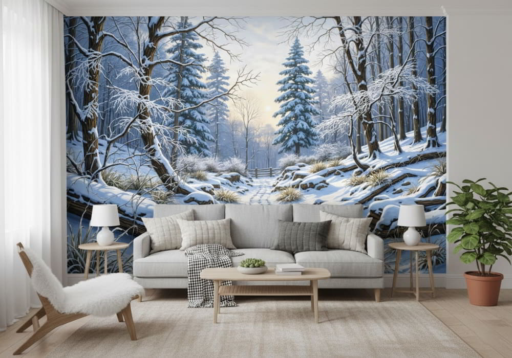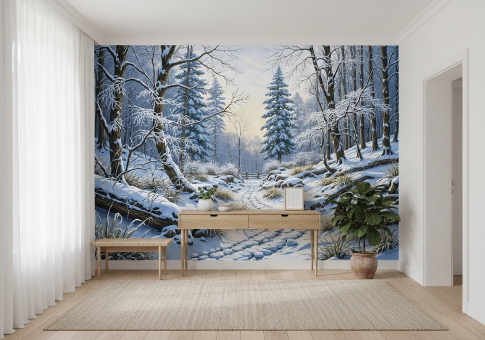 Winter Path Stillness - AI Art Wall Mural for Contemporary Interiors