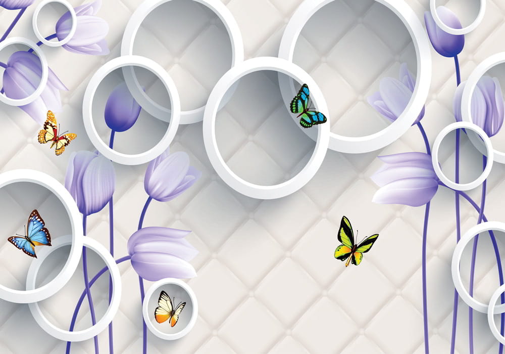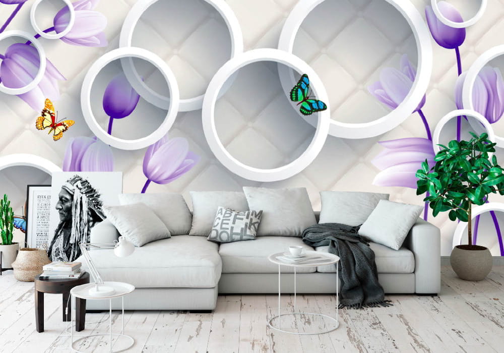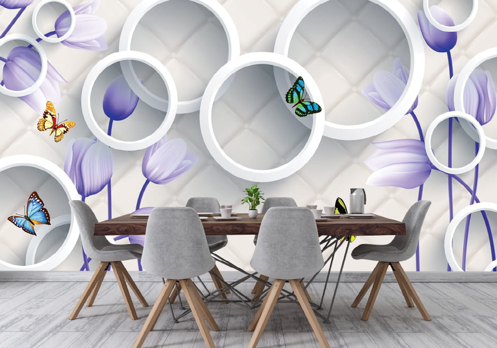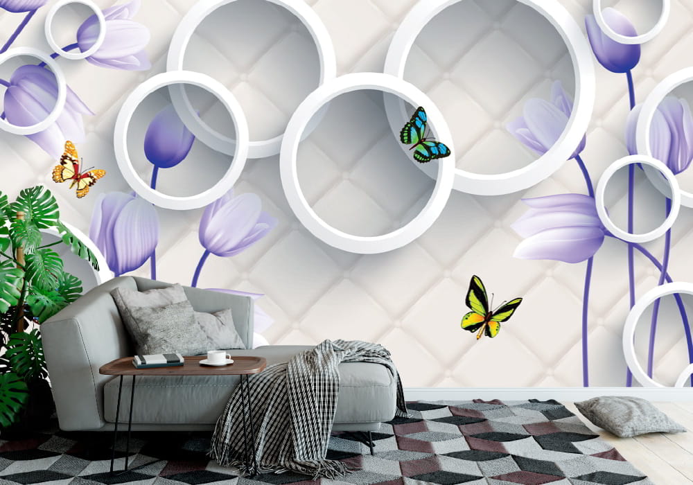 Transform your room into a tranquil retreat with the 3D Violet Flowers & Butterflies Wall Mural. Featuring lush organic tones and serene natural perspectives, this design creates an immersive window to the outdoors.Timeless Elegance: Classic & Modern Collection