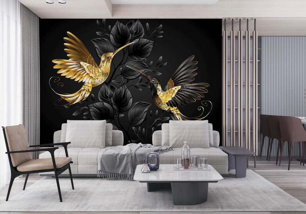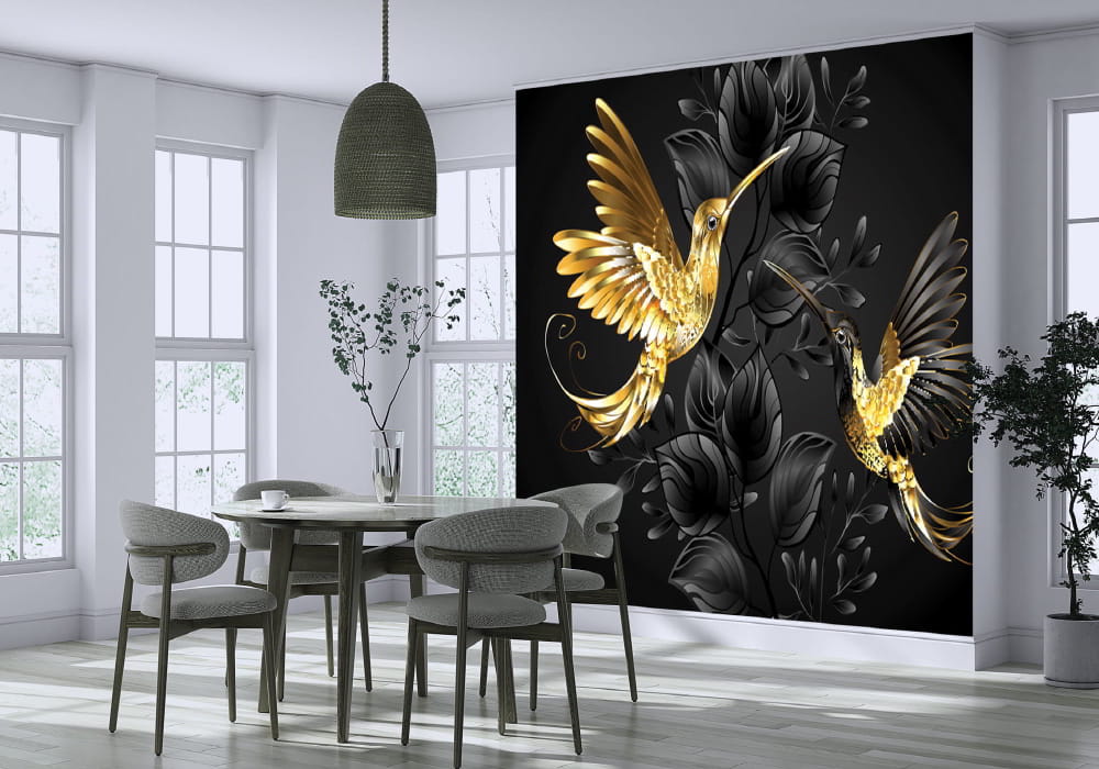 Bring the majestic spirit of the wild into your home with Black and Gold Hummingbirds Wall Mural. This high-resolution mural captures the intricate details of nature's finest creatures, from vibrant fur textures to soul-piercing gazes.Timeless Elegance: Classic & Modern Collection