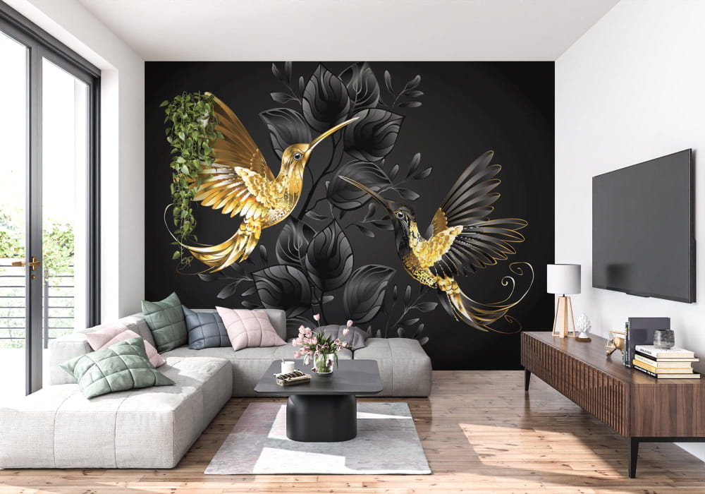Black and Gold Hummingbirds - Classic Wall Mural for Modern Interiors