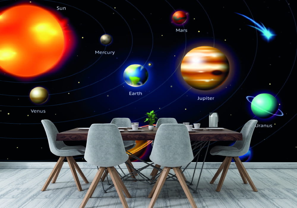 Elevate your interior design with the timeless aesthetic of Planets in the Solar System Wall Mural. Combining balanced compositions with a versatile color palette, this design seamlessly integrates into any modern living space.Timeless Elegance: Classic & Modern Collection