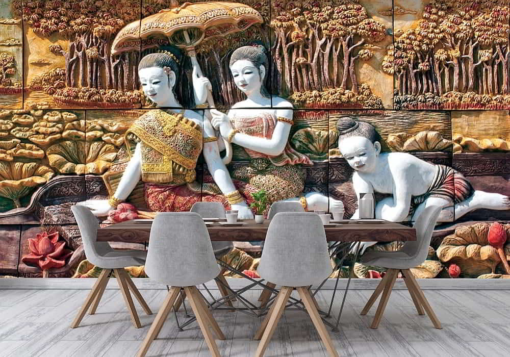 Personalize your space with a design that reflects your passions: Thai Temple Stone Carving Wall Mural. Vibrant, sharp, and full of character, this mural serves as a powerful statement piece for themed rooms or hobby areas.Timeless Elegance: Classic & Modern Collection