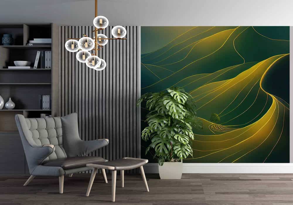 Transform your room into a tranquil retreat with the The Golden Veins of the Mountain Wall Mural. Featuring lush organic tones and serene natural perspectives, this design creates an immersive window to the outdoors.Timeless Elegance: Classic & Modern Collection