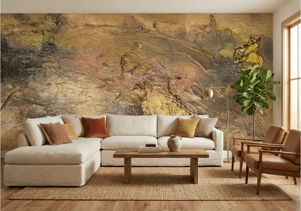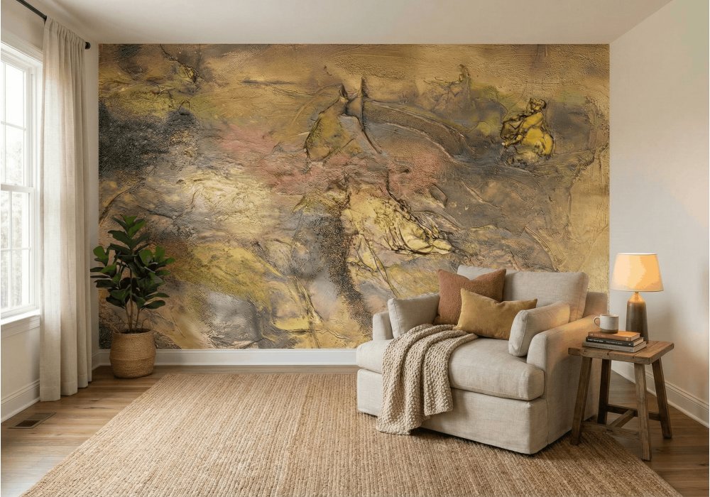Gilded Earthscape - Modern Wall Mural Inspired by Petitto Art