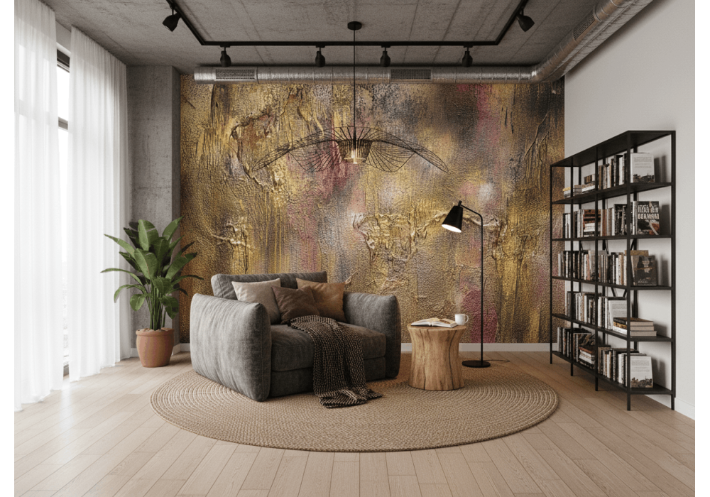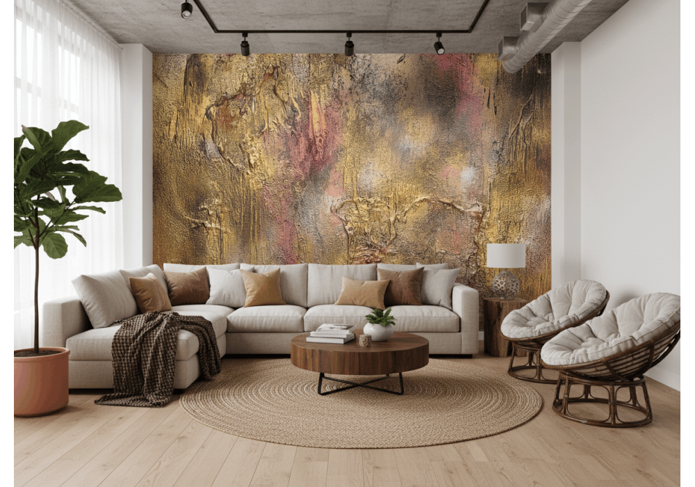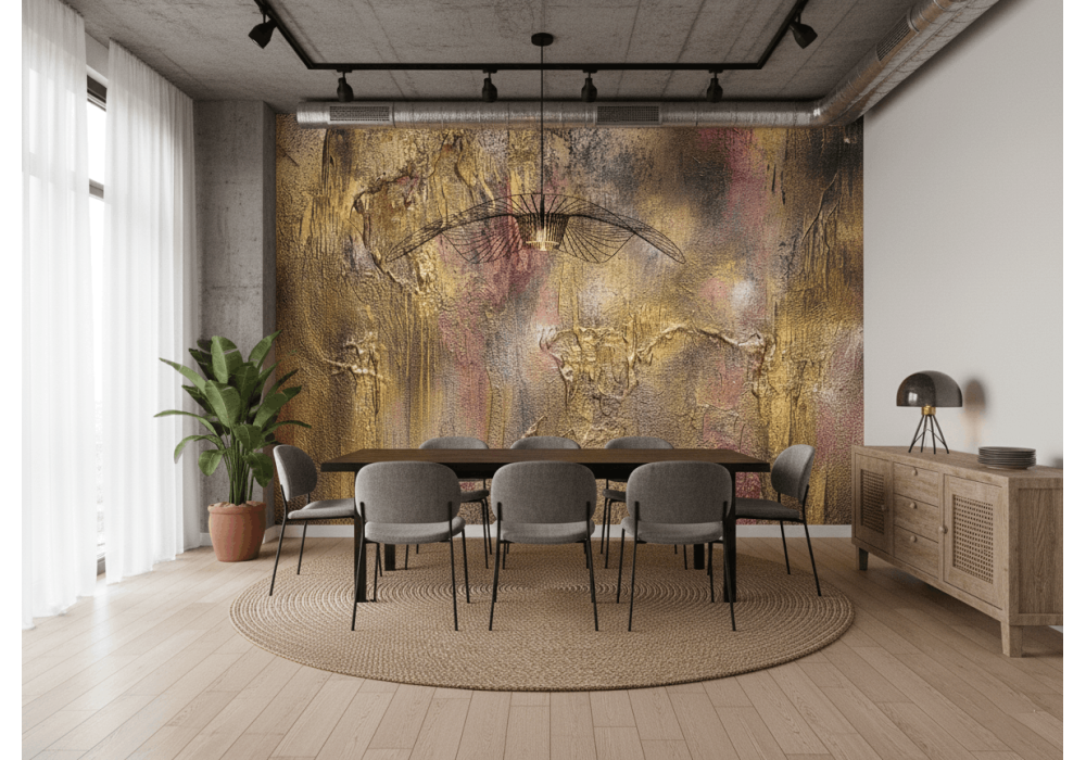 Golden Nebula Abstract Mural - Modern Wall Mural Inspired by Petitto Art