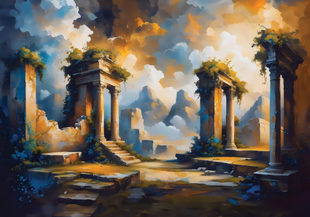 Ancient Greek Temple Ruins - AI Art Wall Mural for Contemporary Interiors