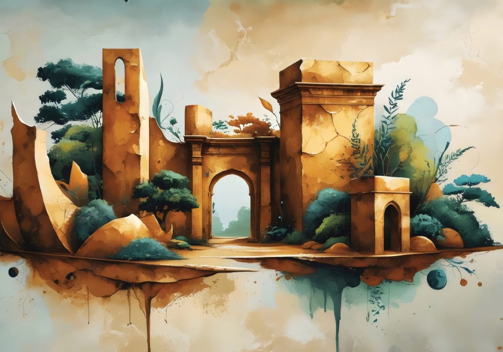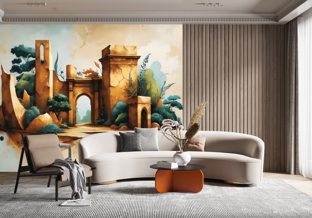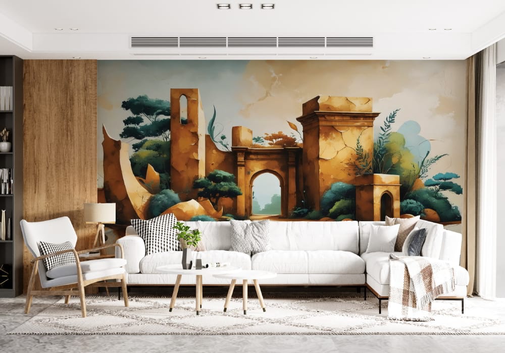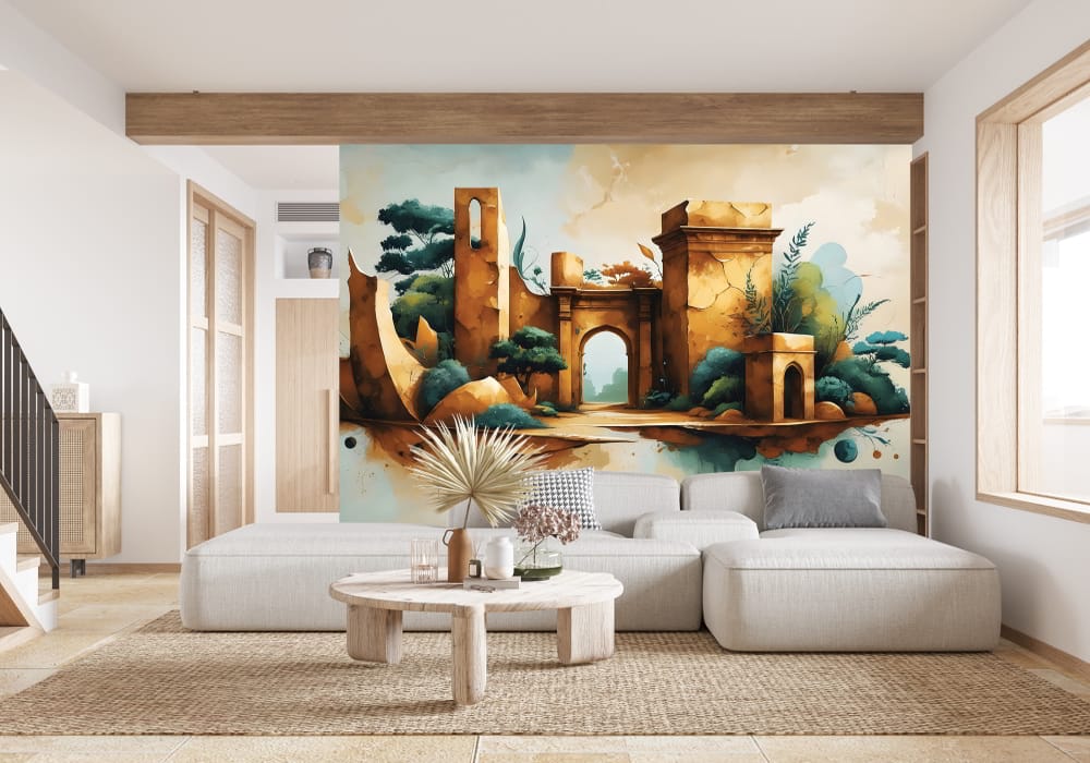 Ancient Ruins Fantasy - AI Art Wall Mural for Contemporary Interiors