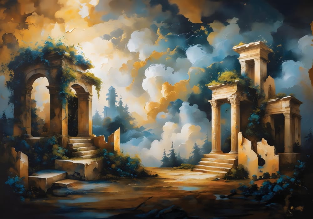Ancient Temple - AI Art Wall Mural for Contemporary Interiors