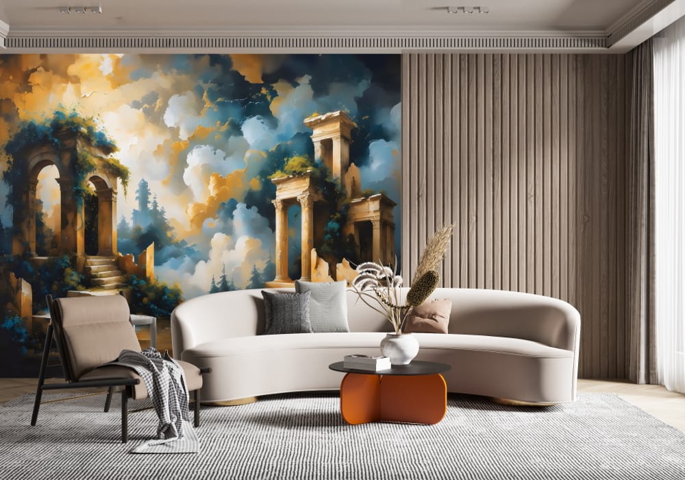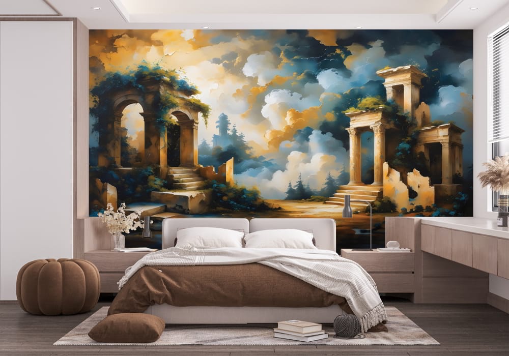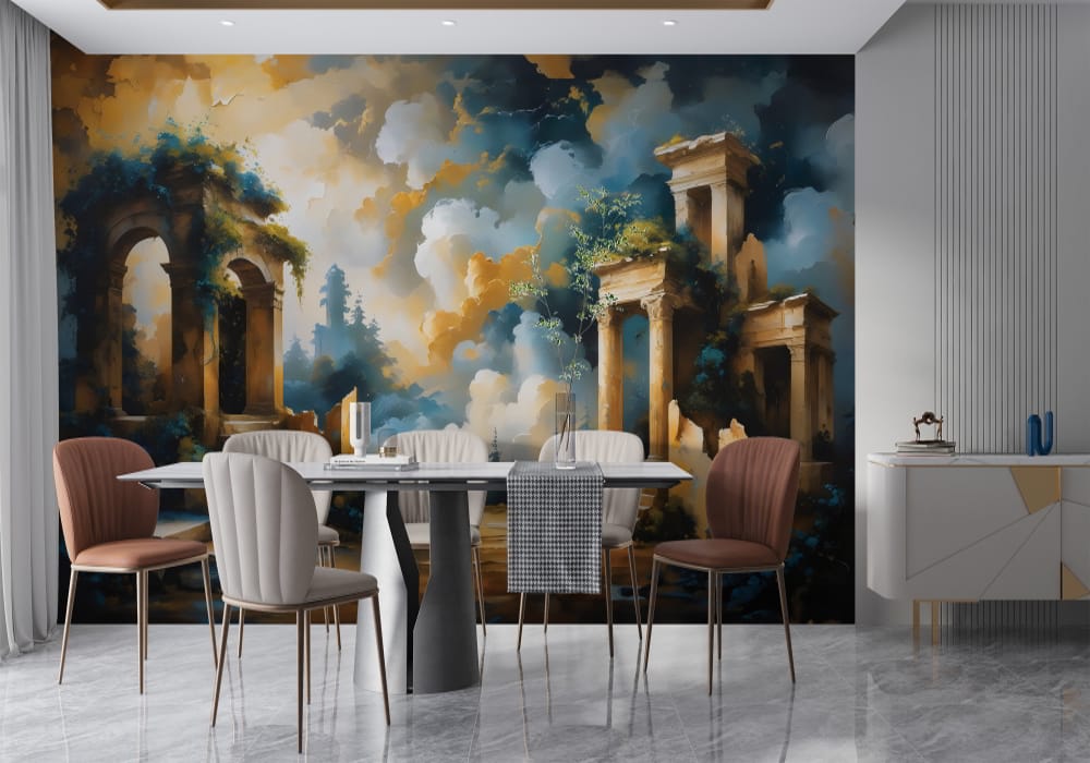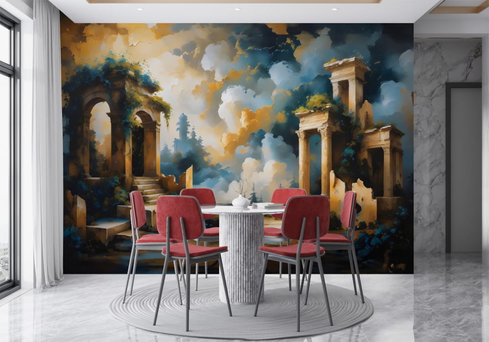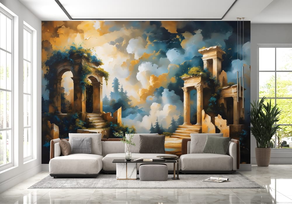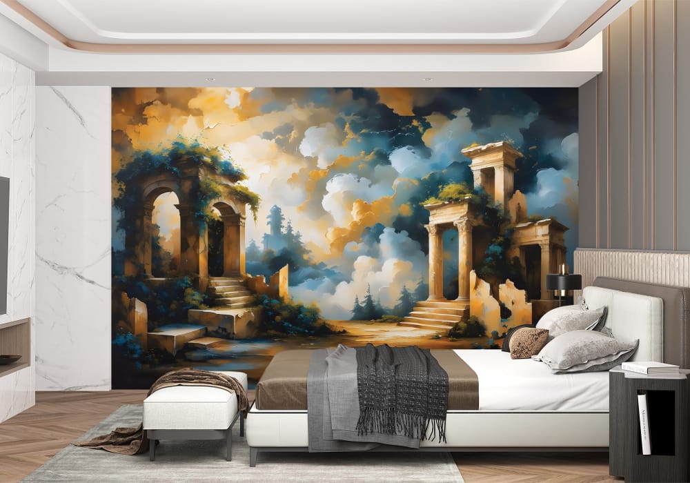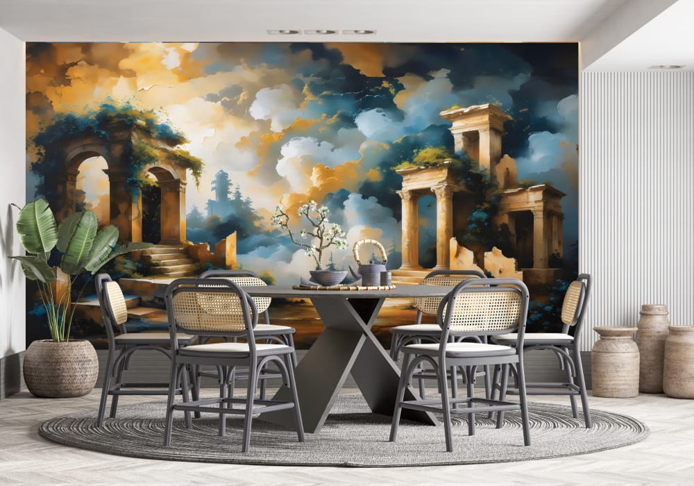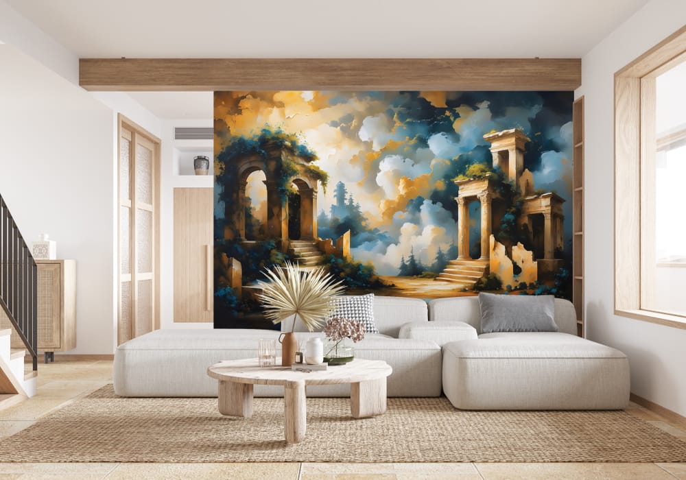 Step back into a reimagined history with Mythical Ancient Temple. This mural uses architectural pers..