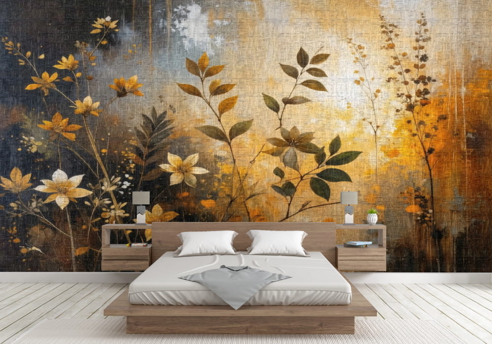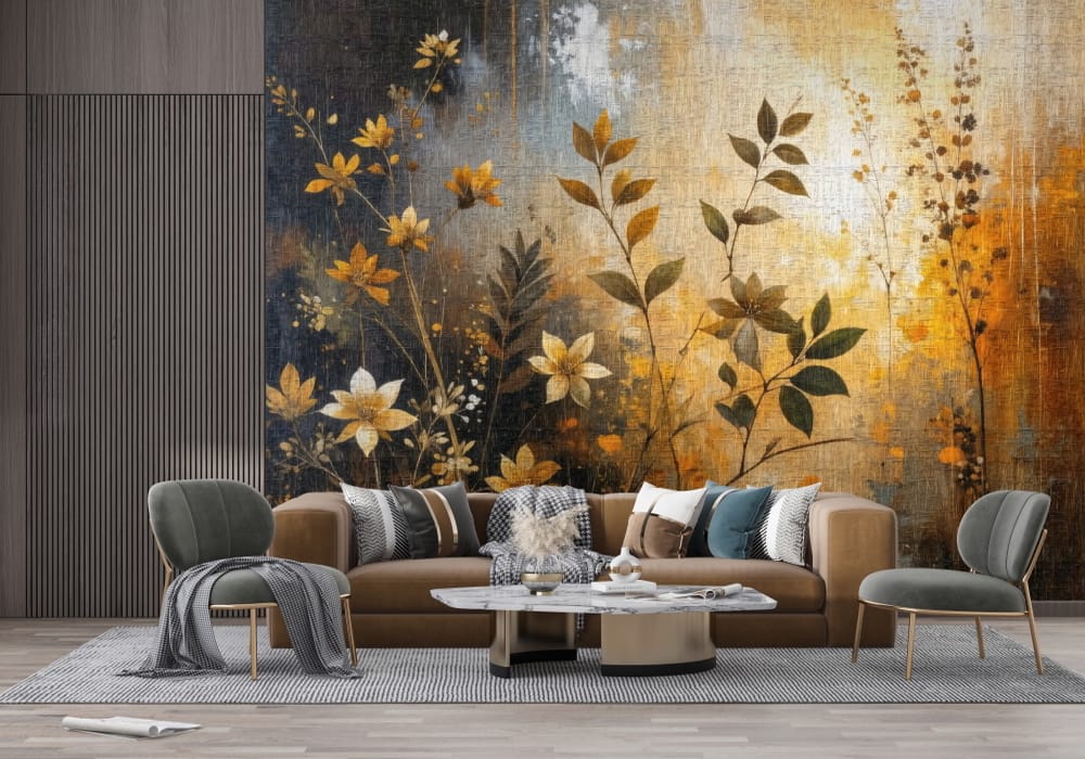 Autumnal Bloom Abstract - AI Art Wall Mural for Contemporary Interiors