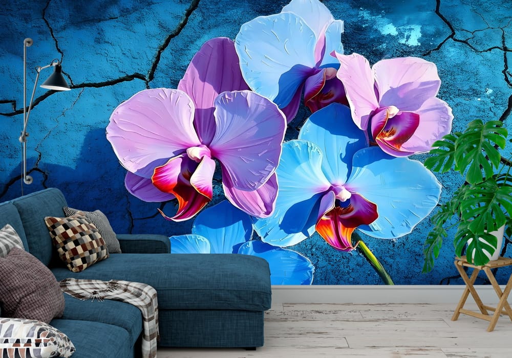 Azure Bloom Rhapsody - AI Art Wall Mural for Contemporary Interiors