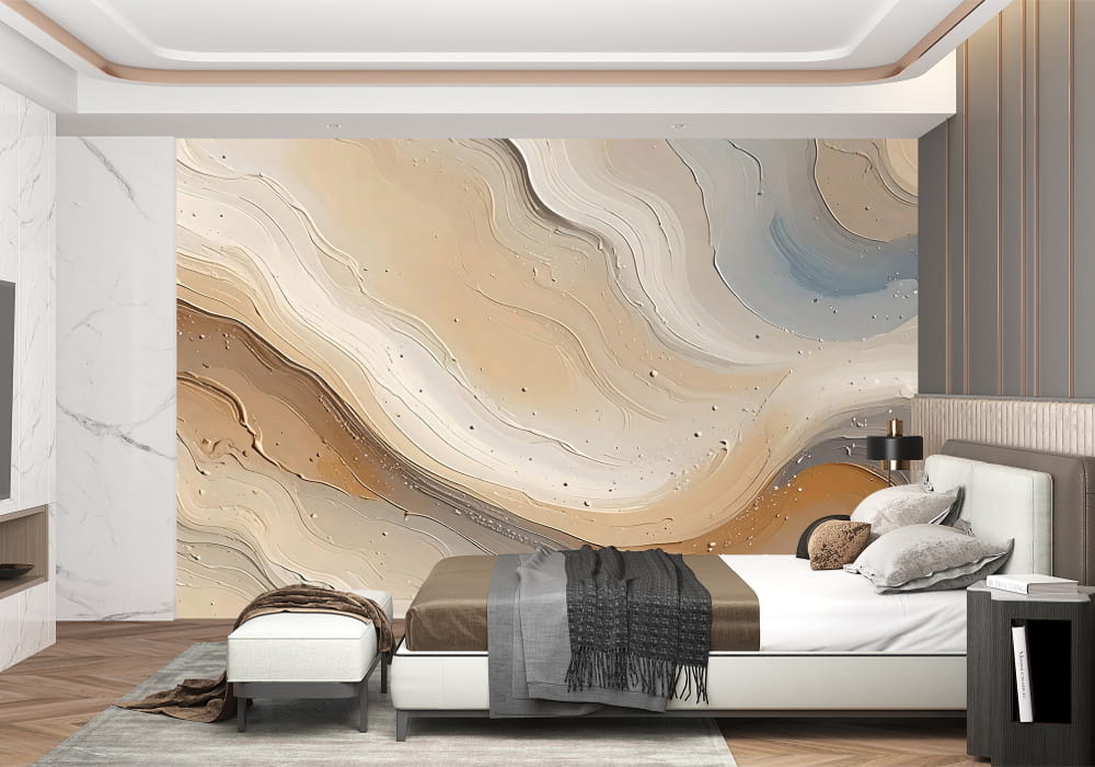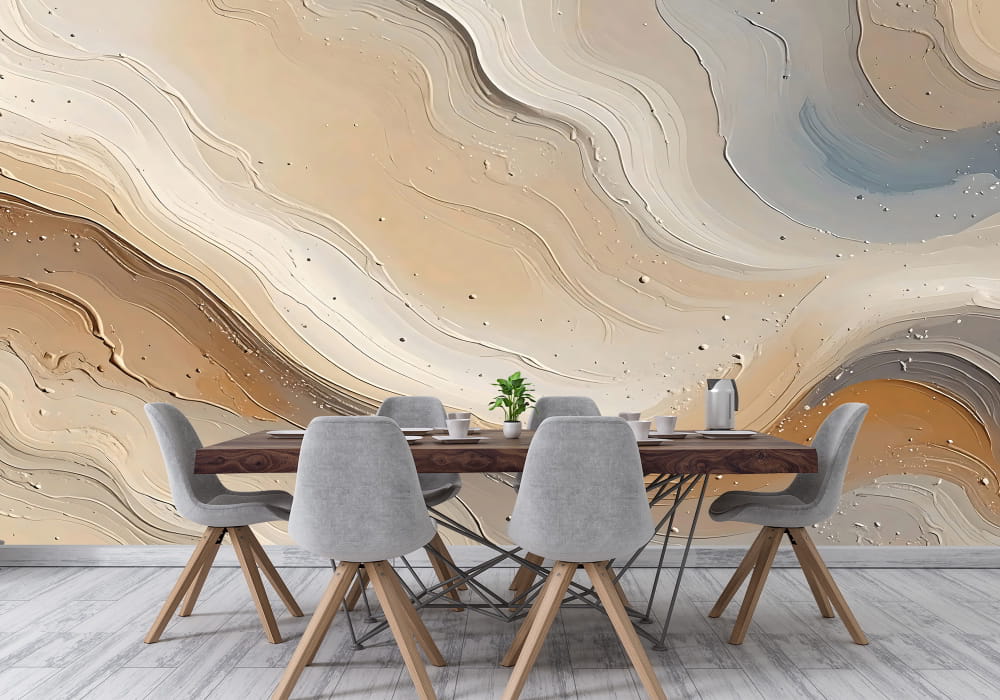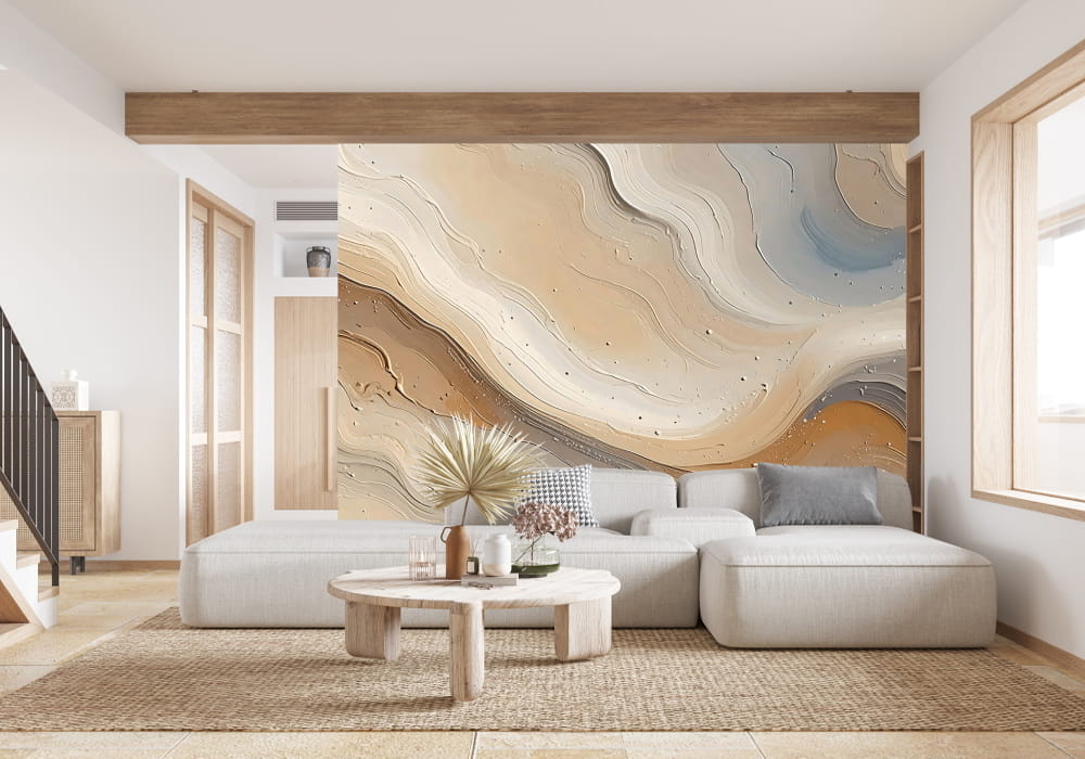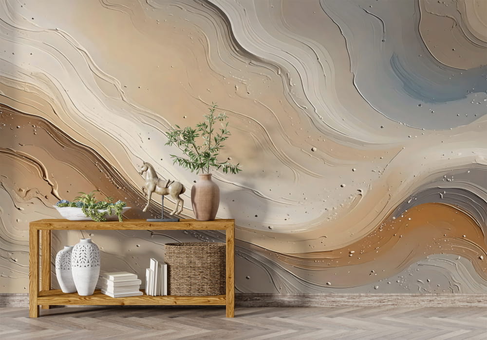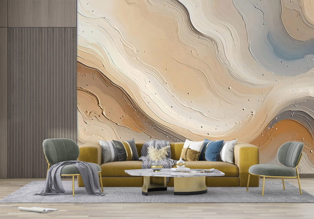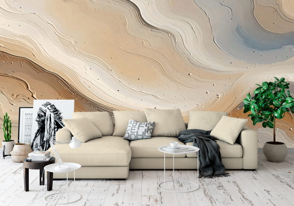 Beige, Brown & Blue Fluid Swirls - Earthy AI Wall Mural