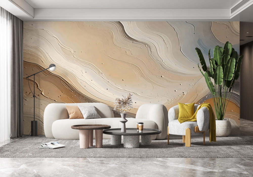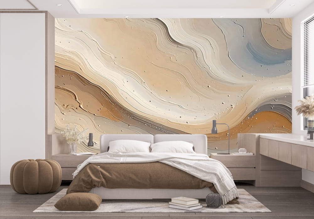 Bring the power of the tides to your interior with Marbled Cream & Beige Wave. This dynamic mura..