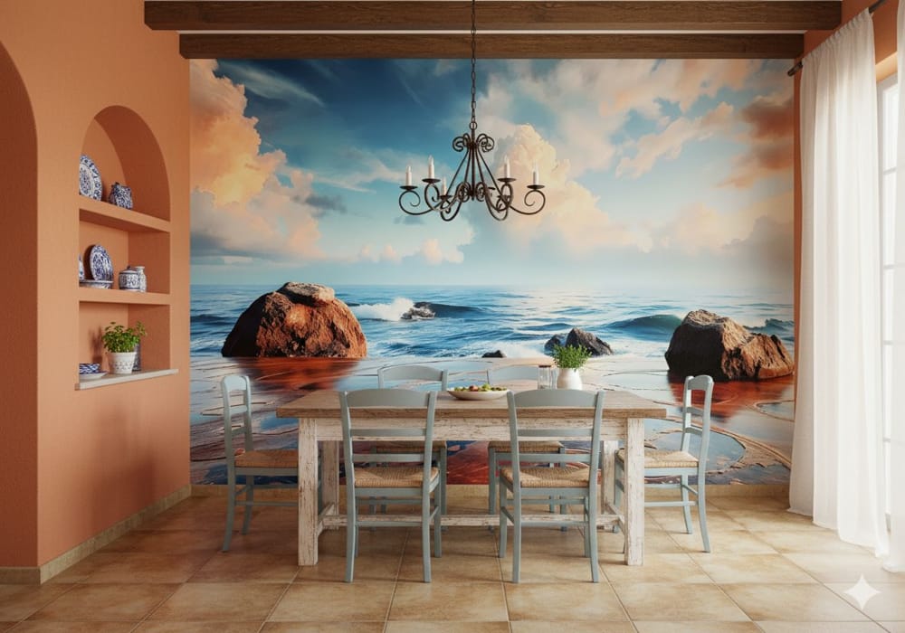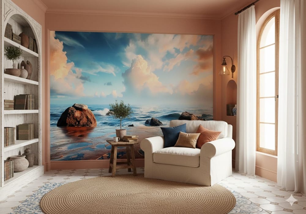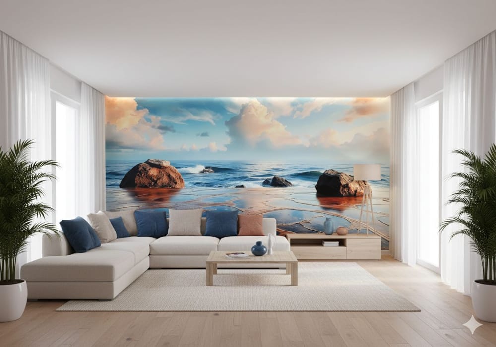 Coastal Twilight - AI Art Wall Mural for Contemporary Interiors