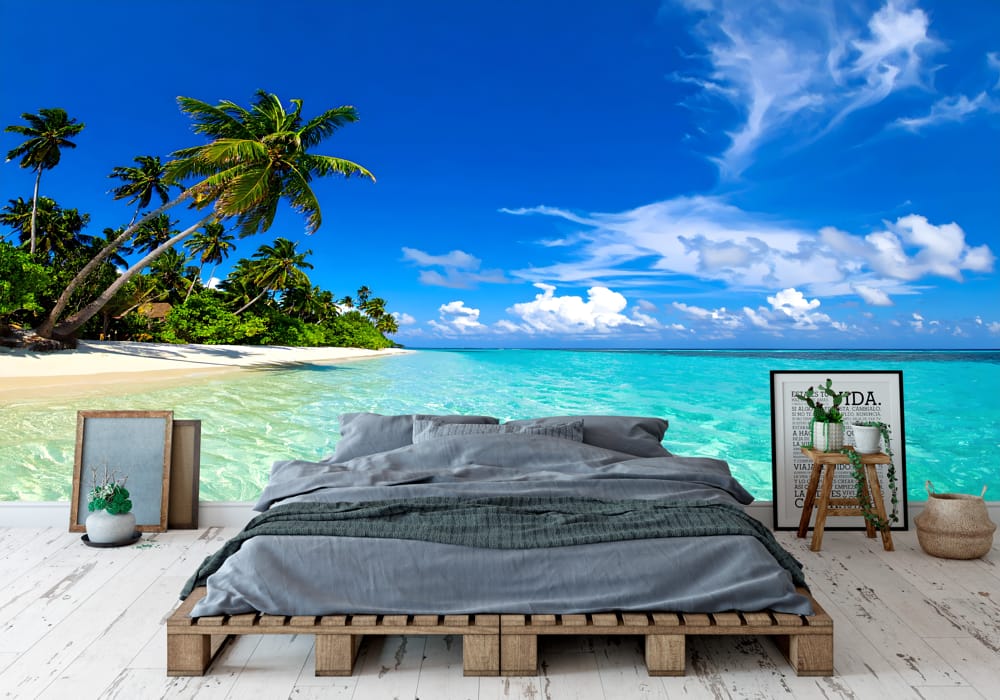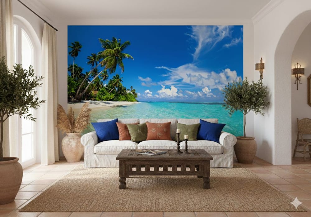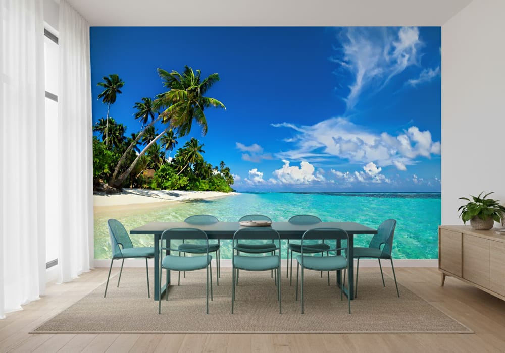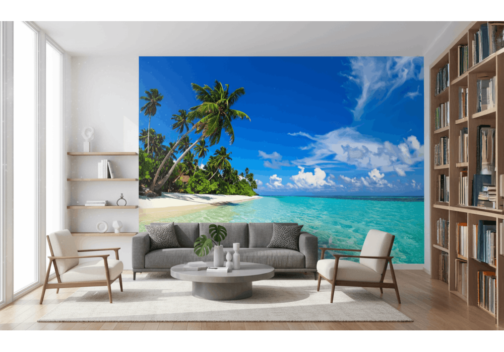 Crystal Clear Water Beach - AI Art Wall Mural for Contemporary Interiors
