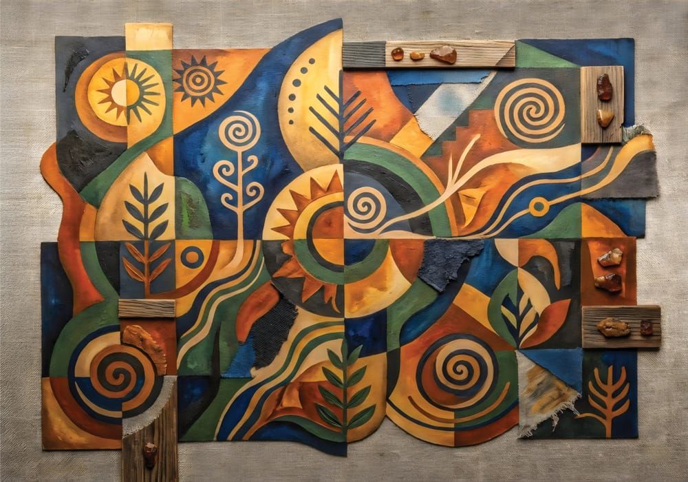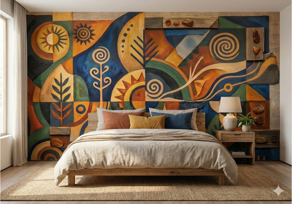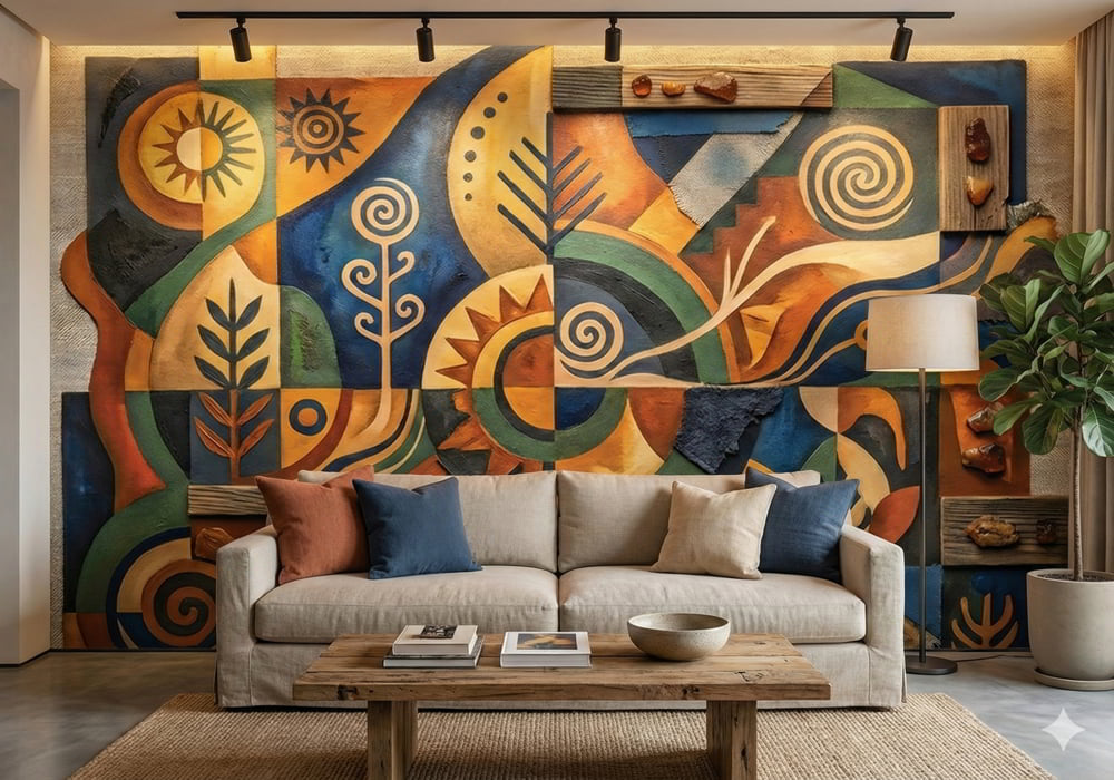 Earthbound Symbols - AI Art Wall Mural for Contemporary Interiors
