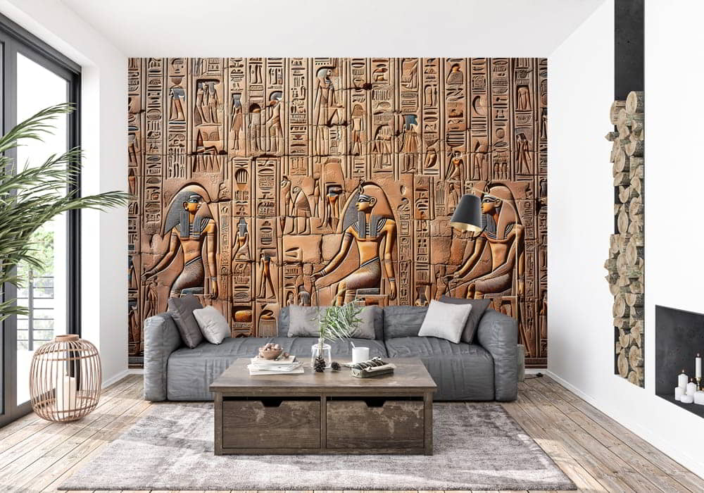 Step back into a reimagined history with Egyptian Relief. This mural uses architectural perspective ..