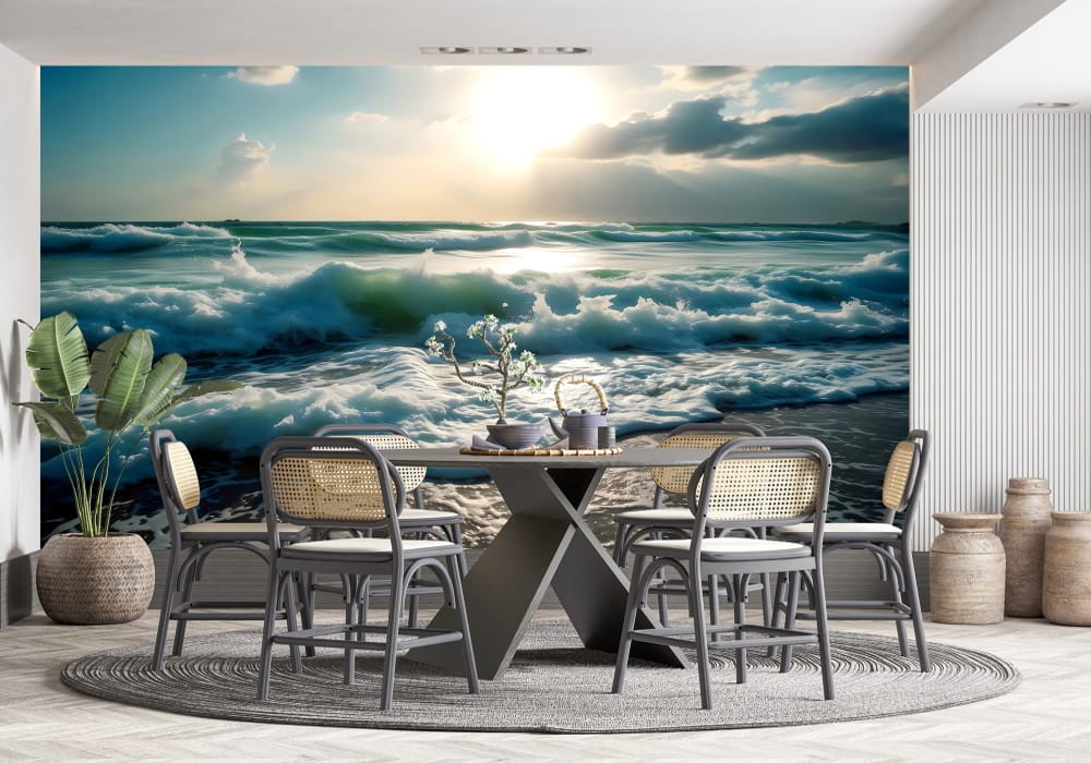 Bring the power of the tides to your interior with Dusk Ocean Waves. This dynamic mural captures the..