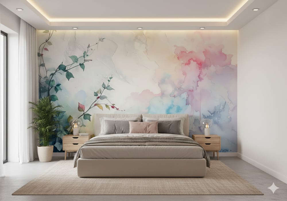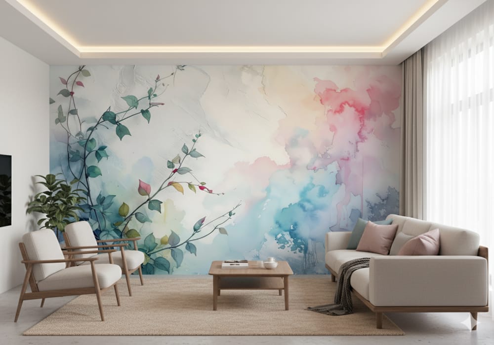 Ethereal Bloom - AI Art Wall Mural for Contemporary Interiors