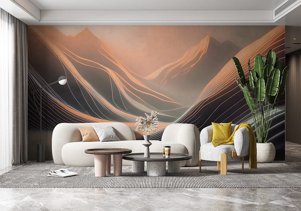 Bring the power of the tides to your interior with Golden Waves Abstract. This dynamic mural capture..