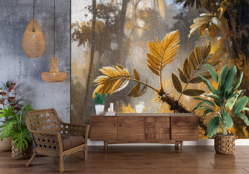 Forest Gold - AI Art Wall Mural for Contemporary Interiors