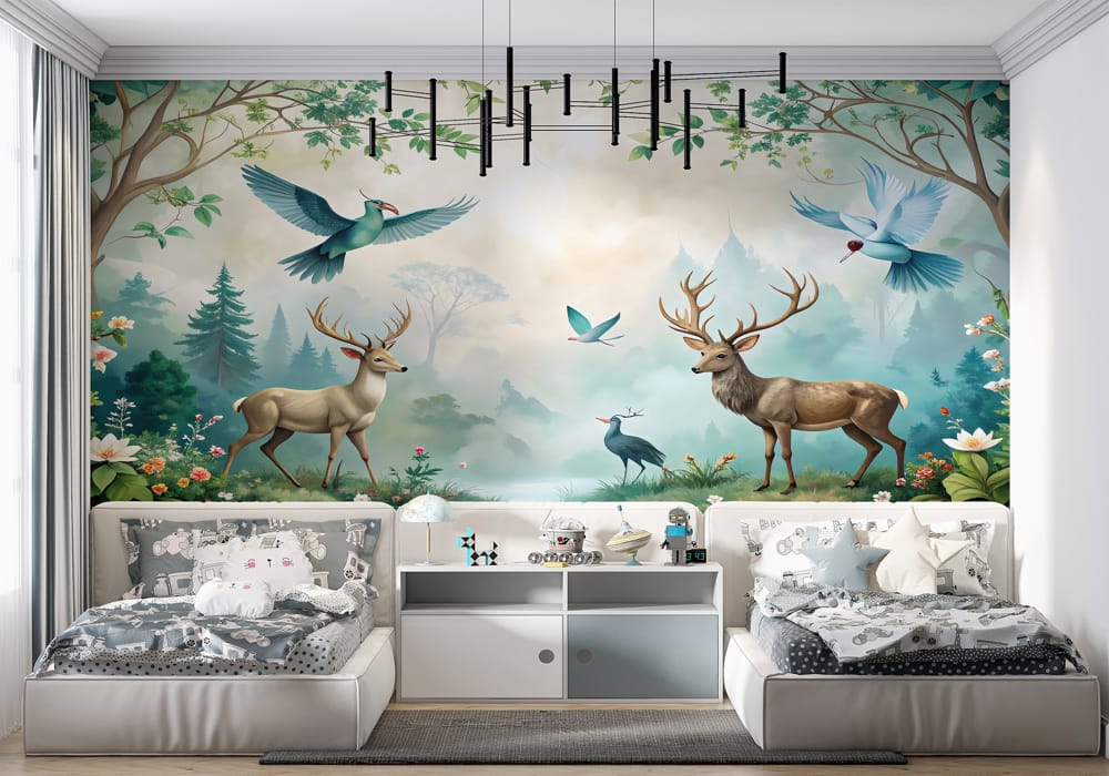 Transform your space into a serene sanctuary with Serene Forest. This design explores a botanical dr..