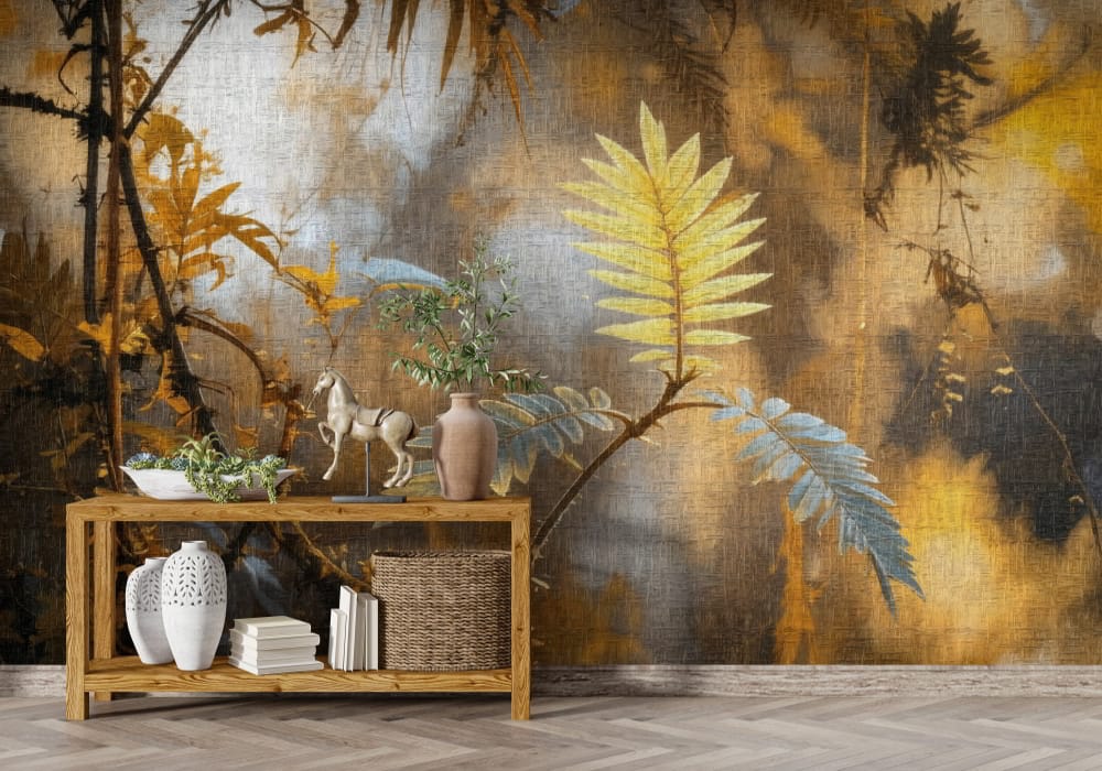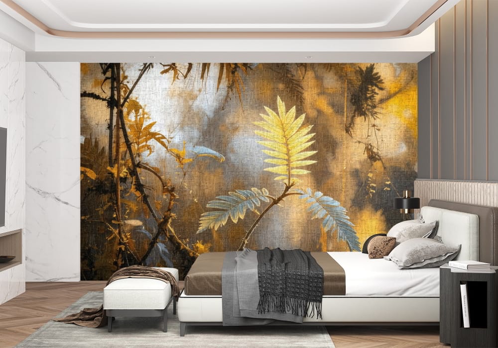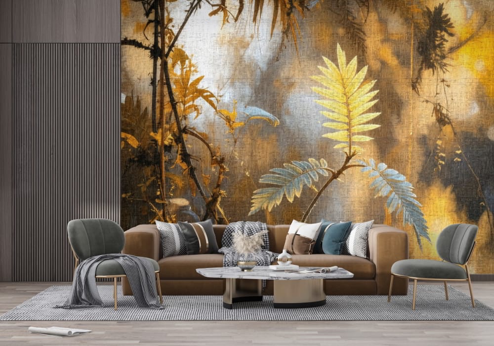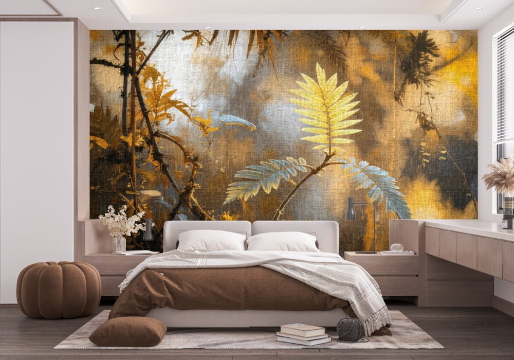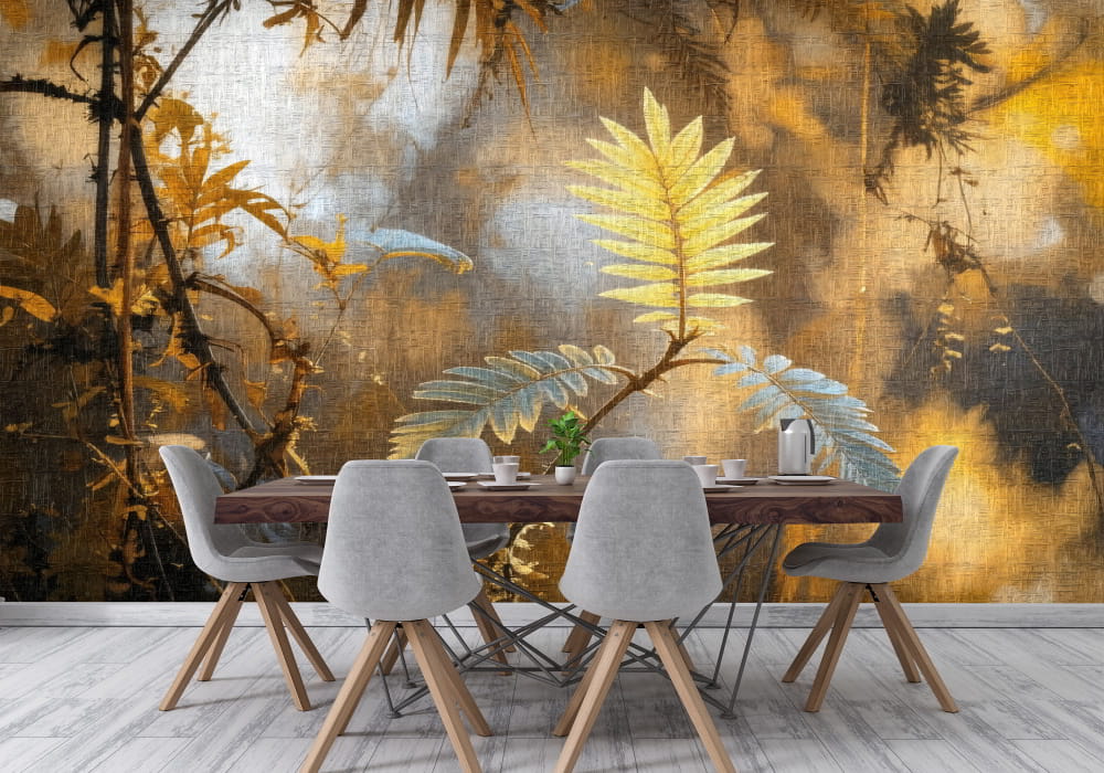 Glimmering Ferns - AI Art Wall Mural for Contemporary Interiors