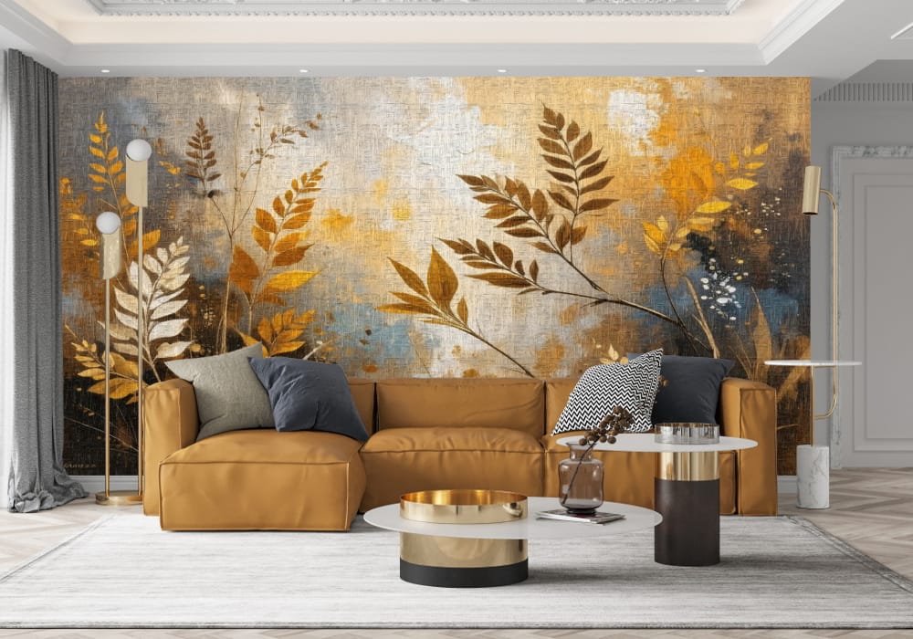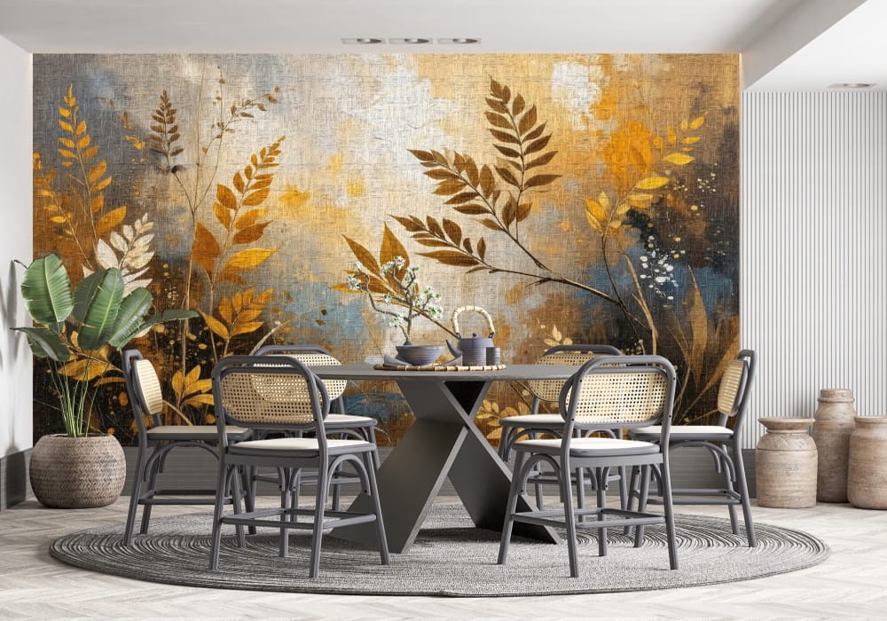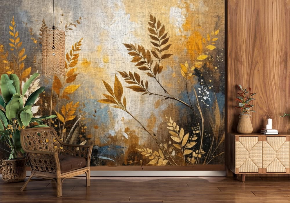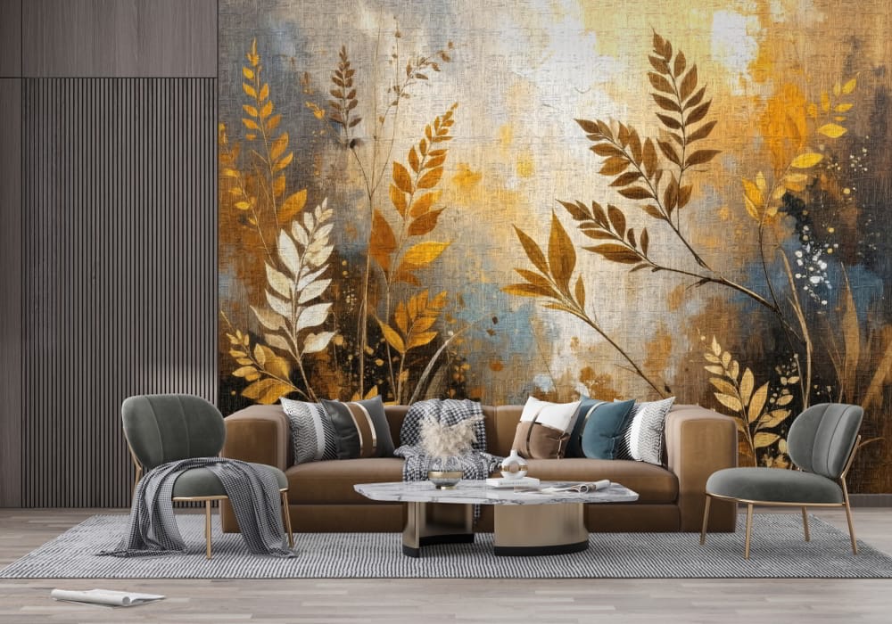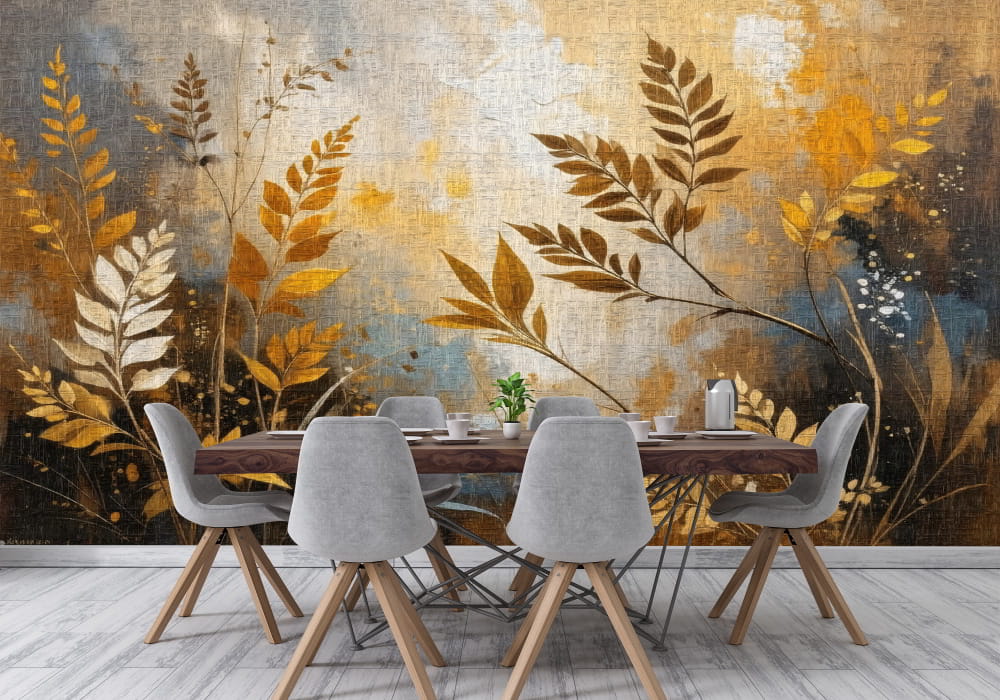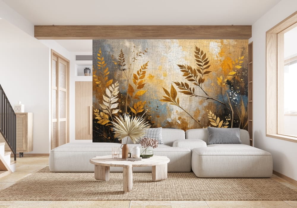 Golden Fields Abstract - AI Art Wall Mural for Contemporary Interiors