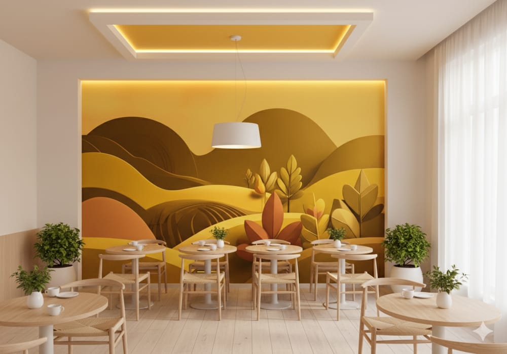 Enhance your interior atmosphere with the unique perspective of Golden Vista. This AI-generated mura..