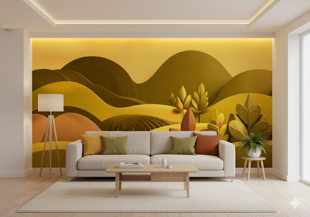 Golden Horizon - AI Art Wall Mural for Contemporary Interiors