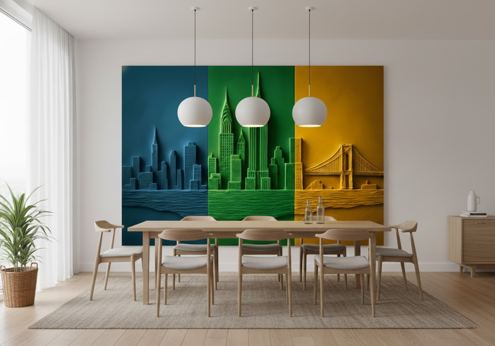 Discover the elegance of clean lines with Architectural Prism Skyline. Unlike traditional murals, th..