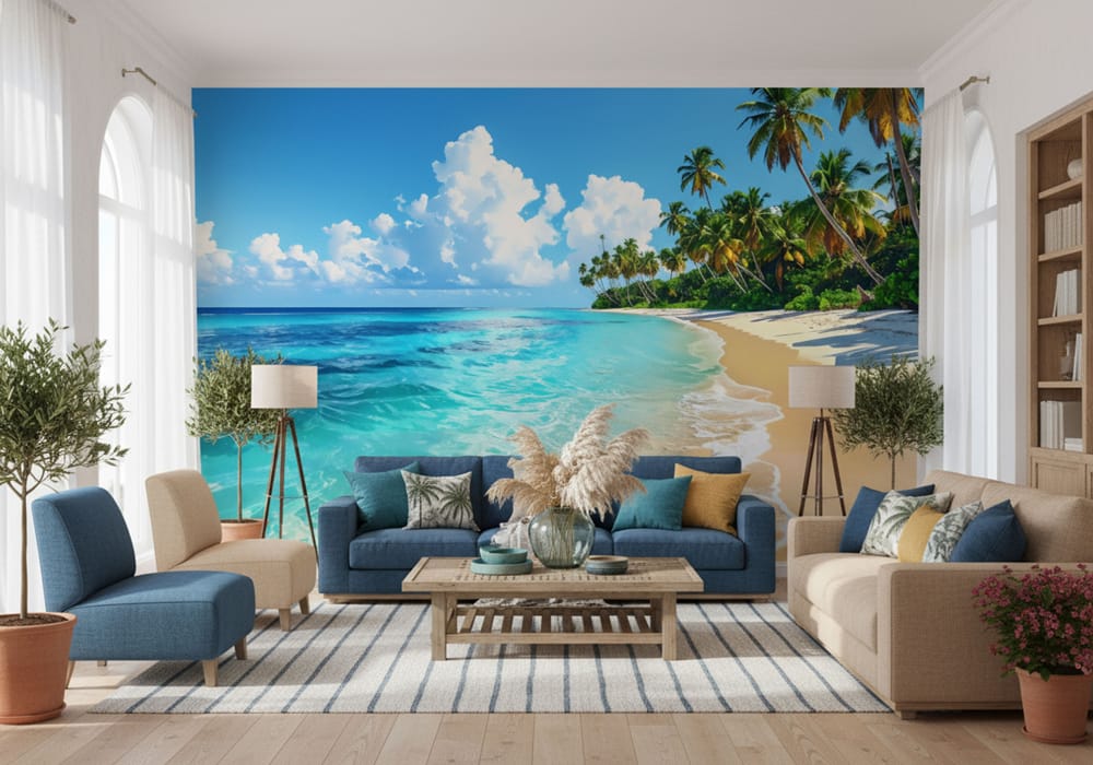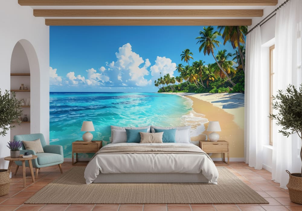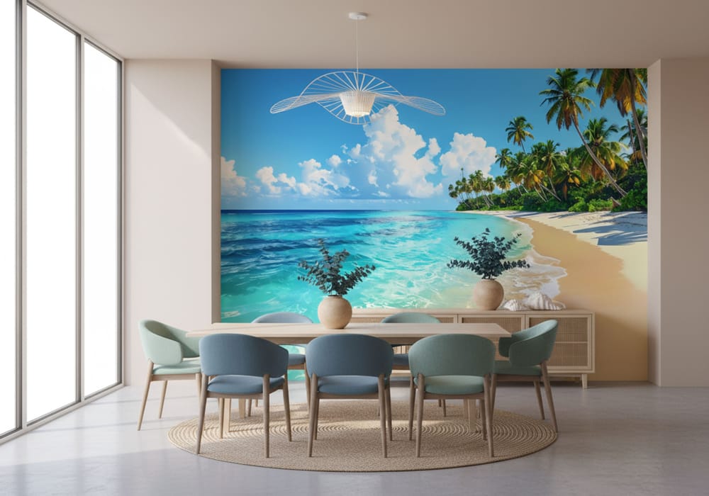 Idyllic Beach Day - AI Art Wall Mural for Contemporary Interiors