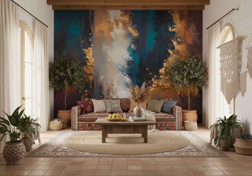 Printed on premium 130g non-woven fabric with professional matte finish and full UV protection. The material is breathable, preventing moisture buildup and keeping walls healthy.