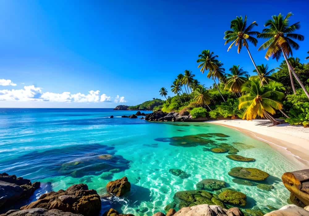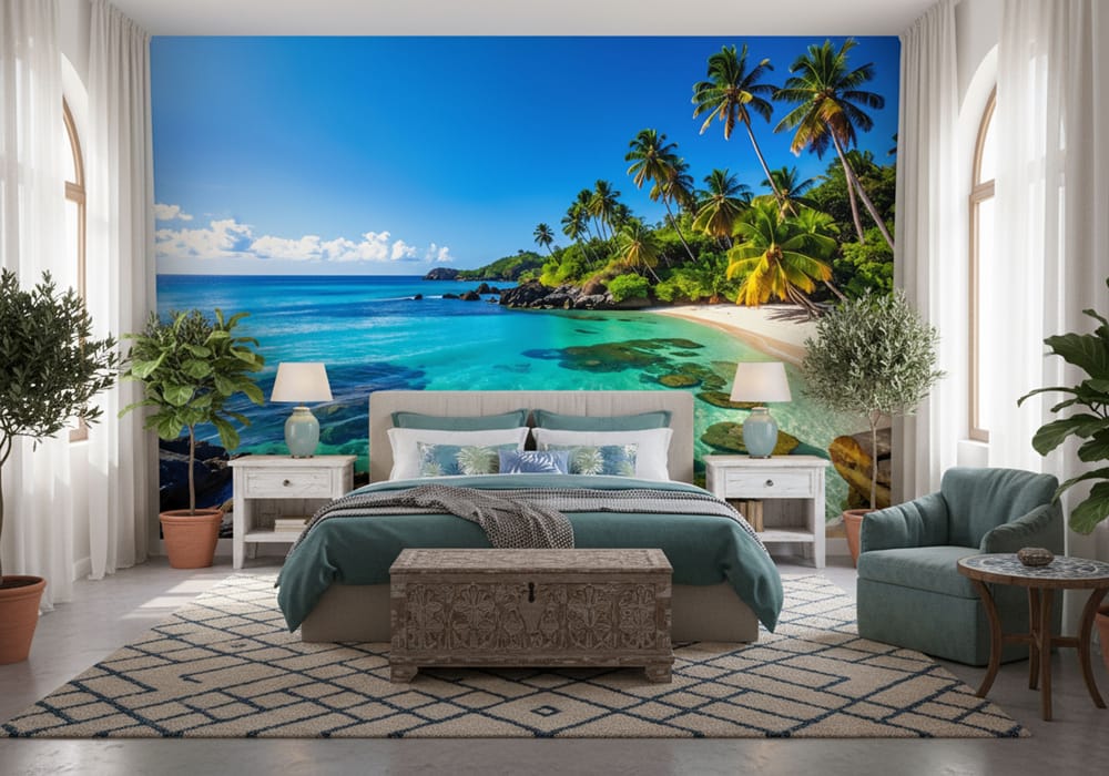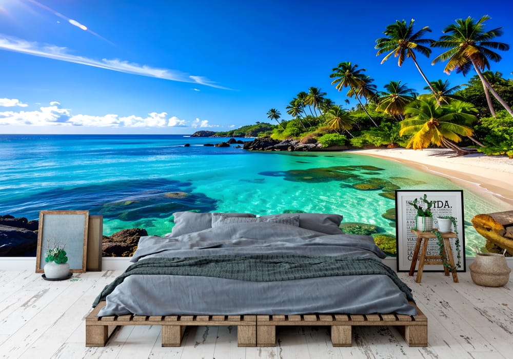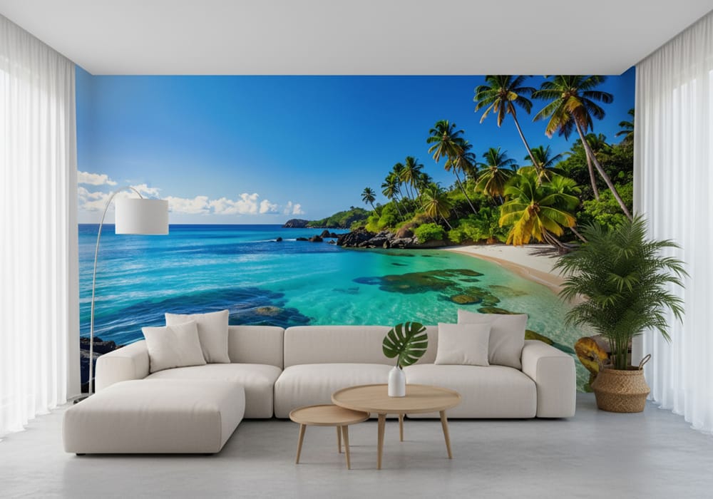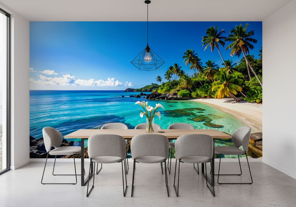 Lush Tropical Beach Lagoon - AI Art Wall Mural for Contemporary Interiors