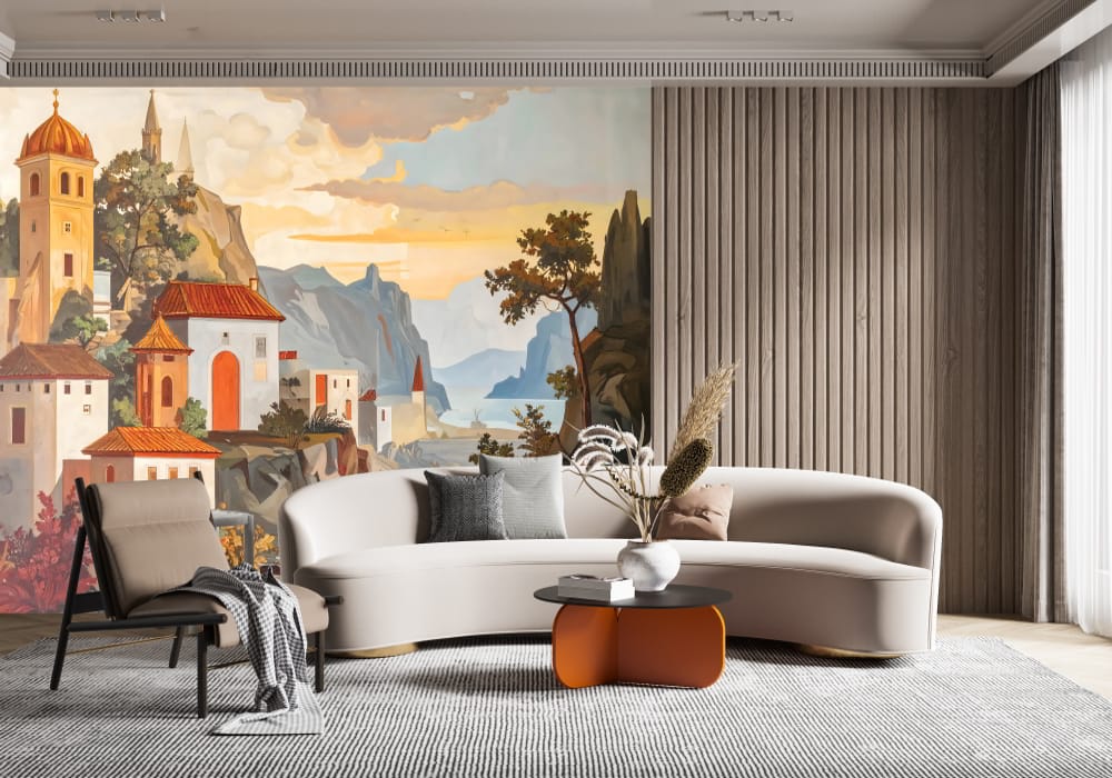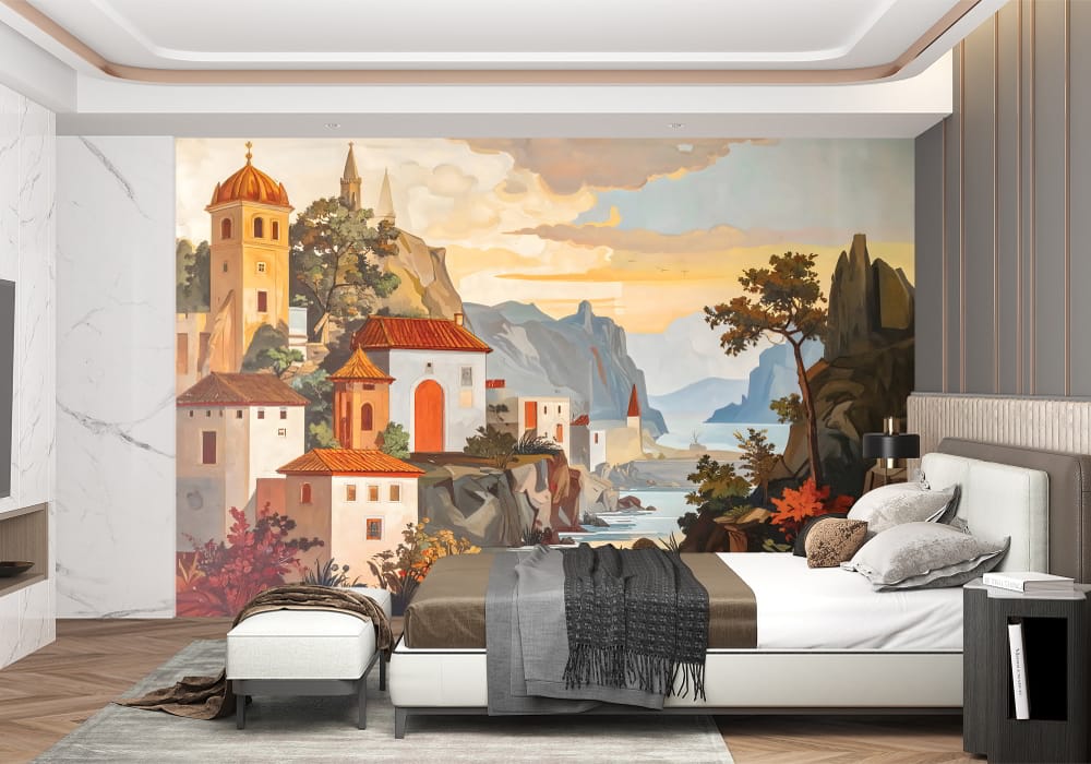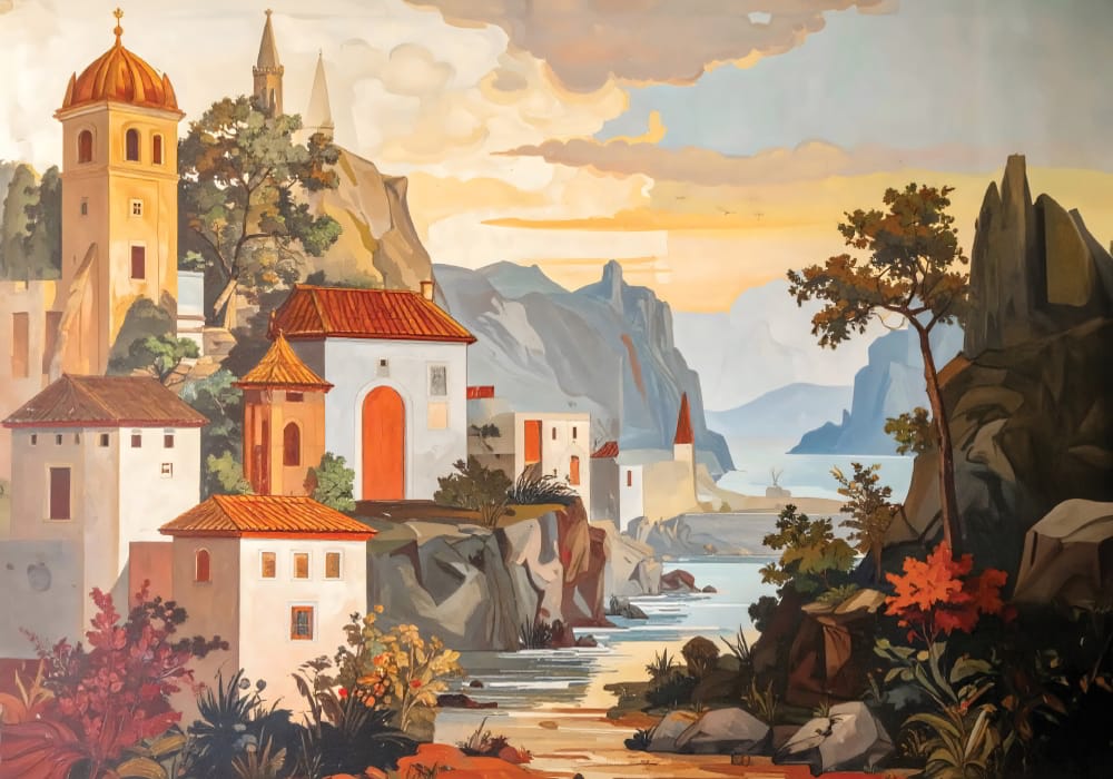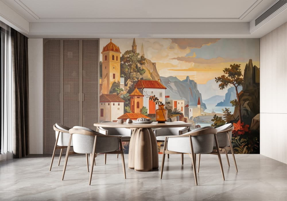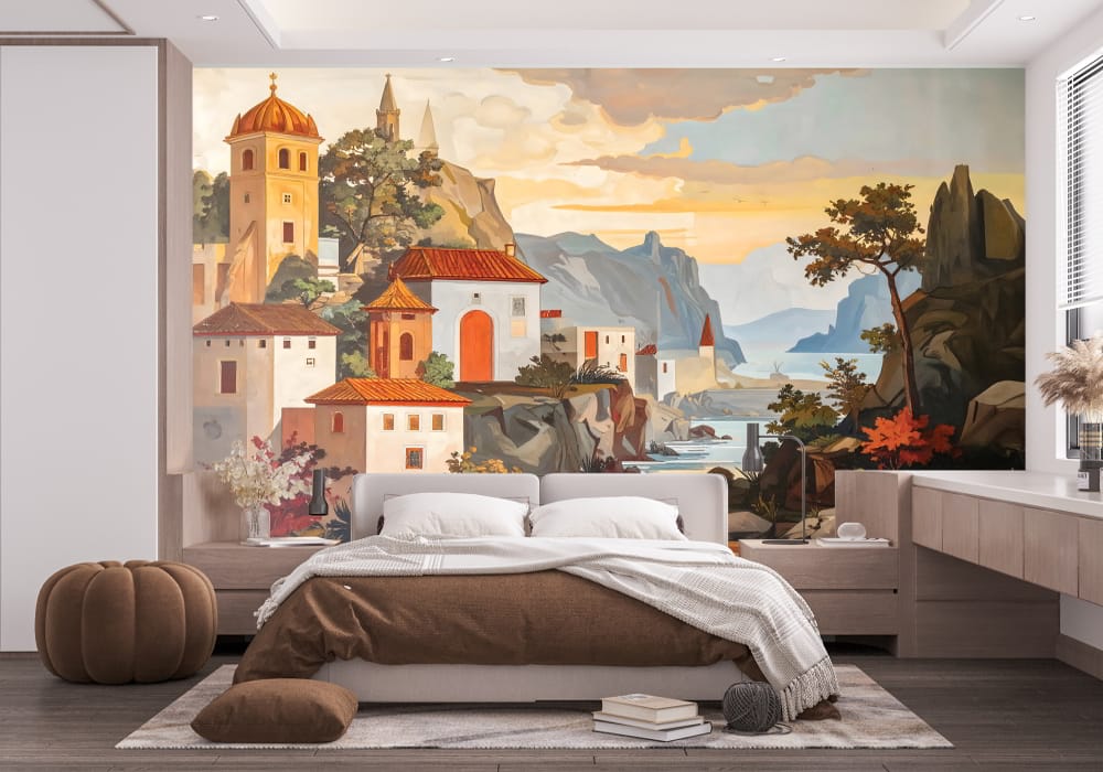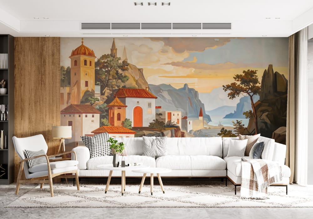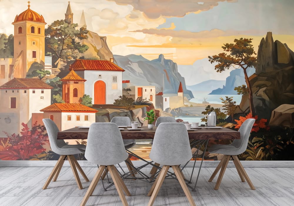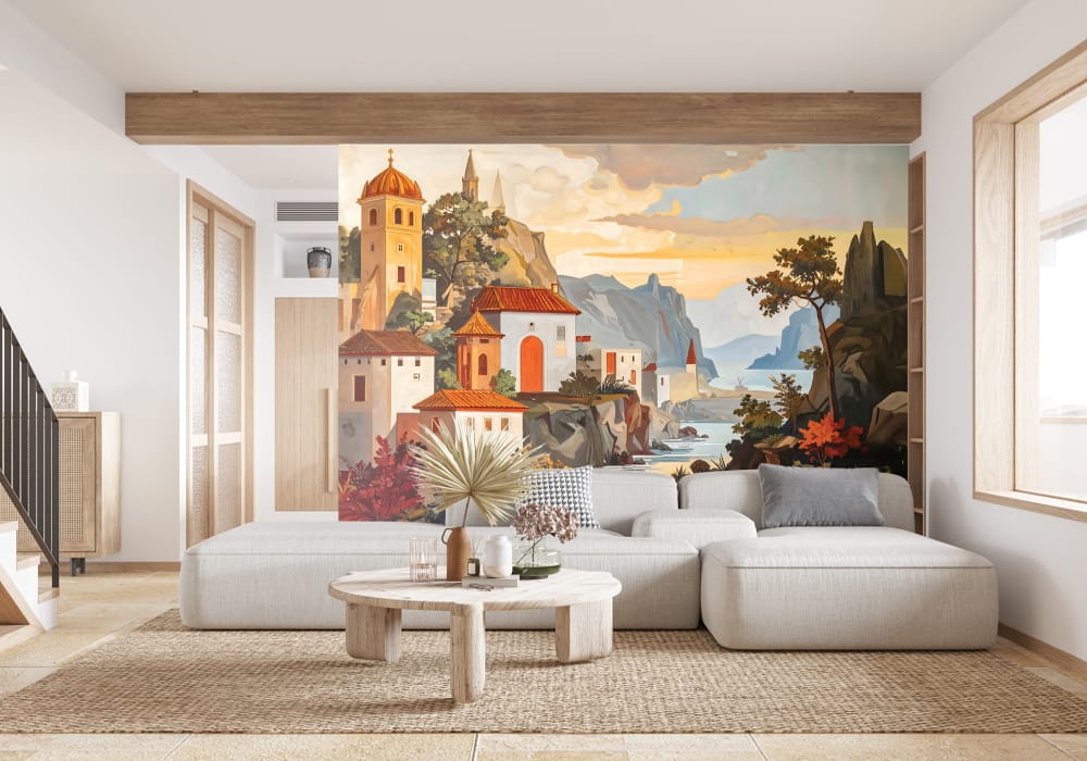 Mediterranean Village - AI Art Wall Mural for Contemporary Interiors