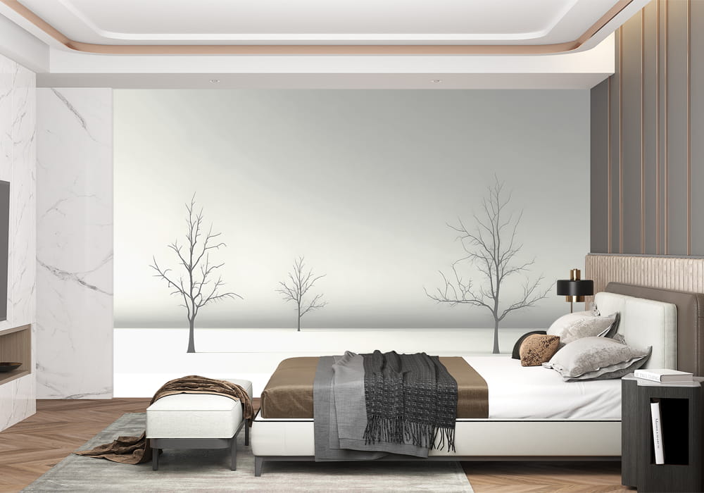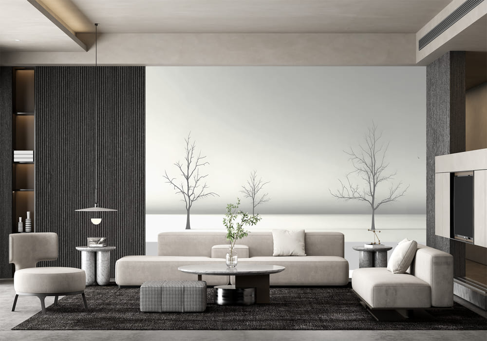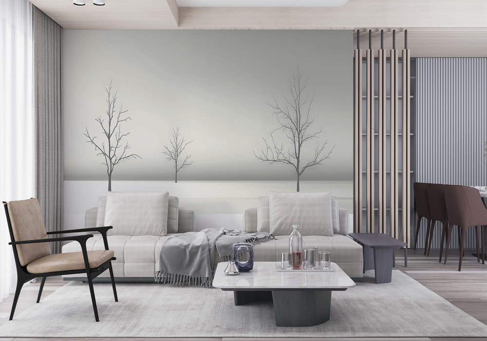 Minimalist Winter Scene - AI Art Wall Mural for Contemporary Interiors
