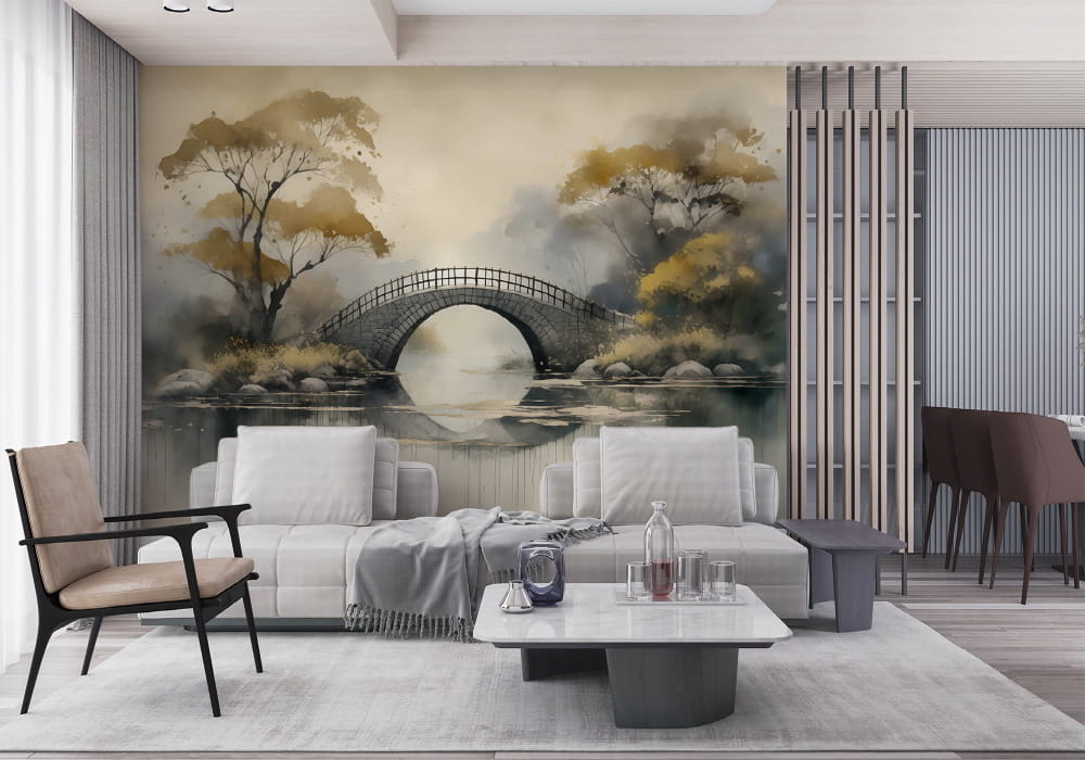 Misty Bridge - AI Art Wall Mural for Contemporary Interiors