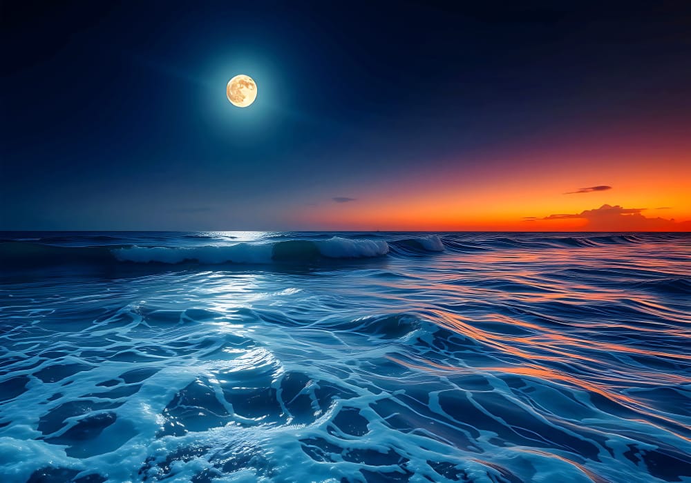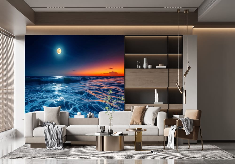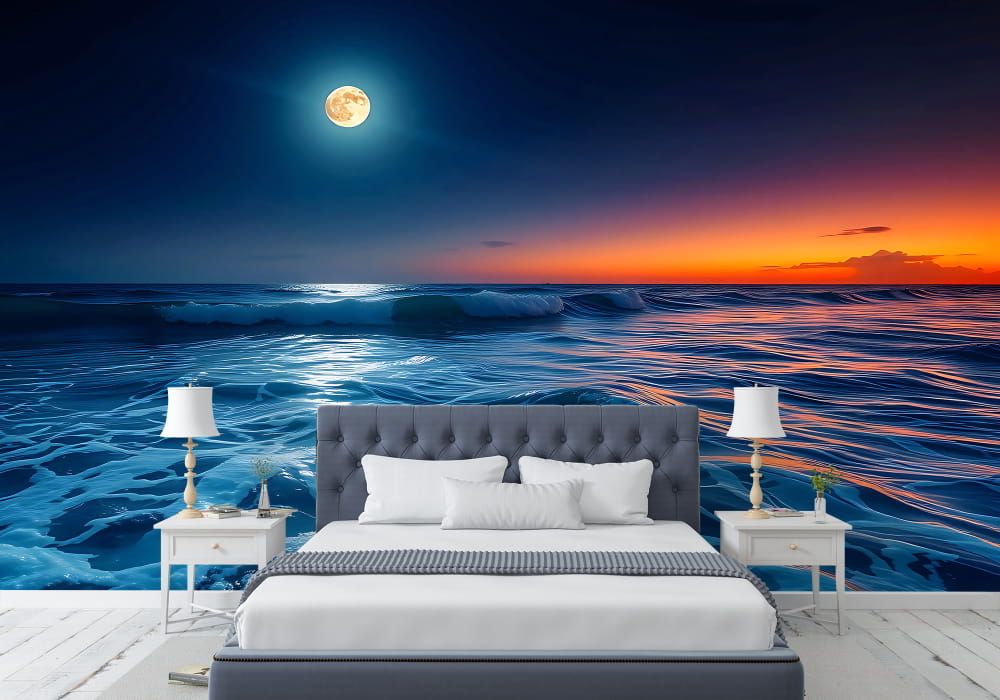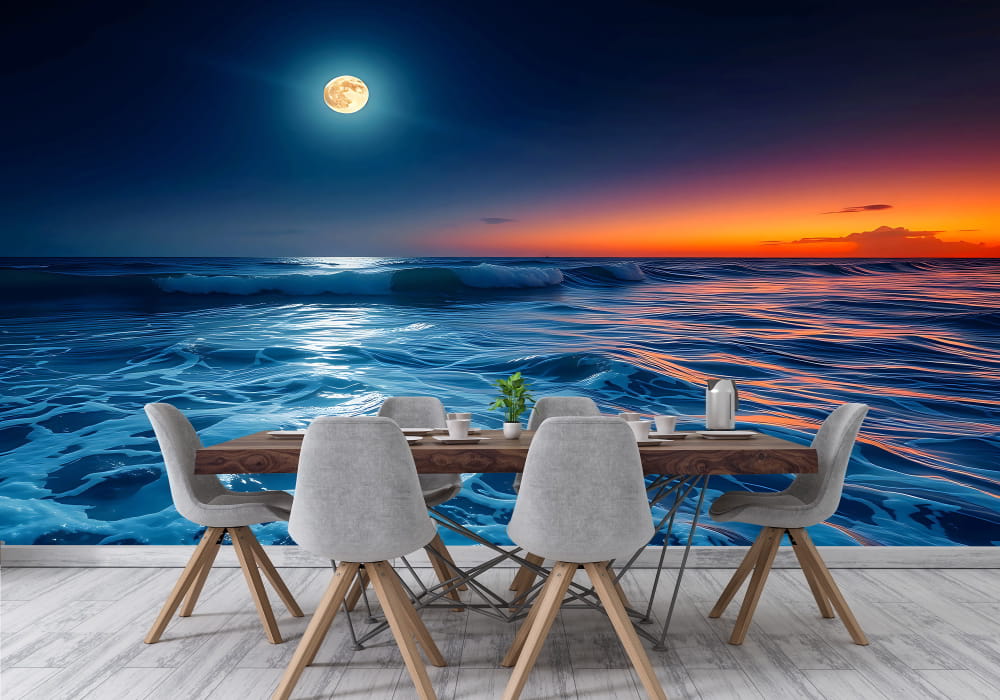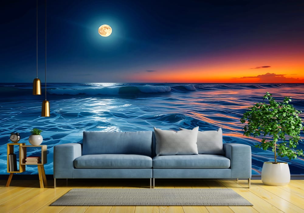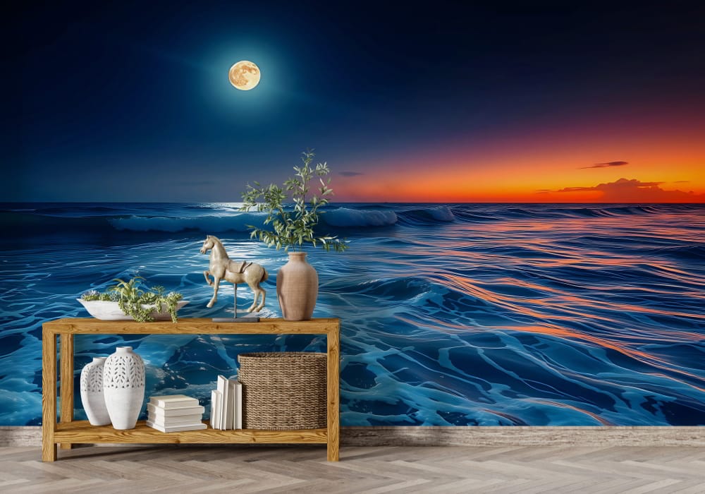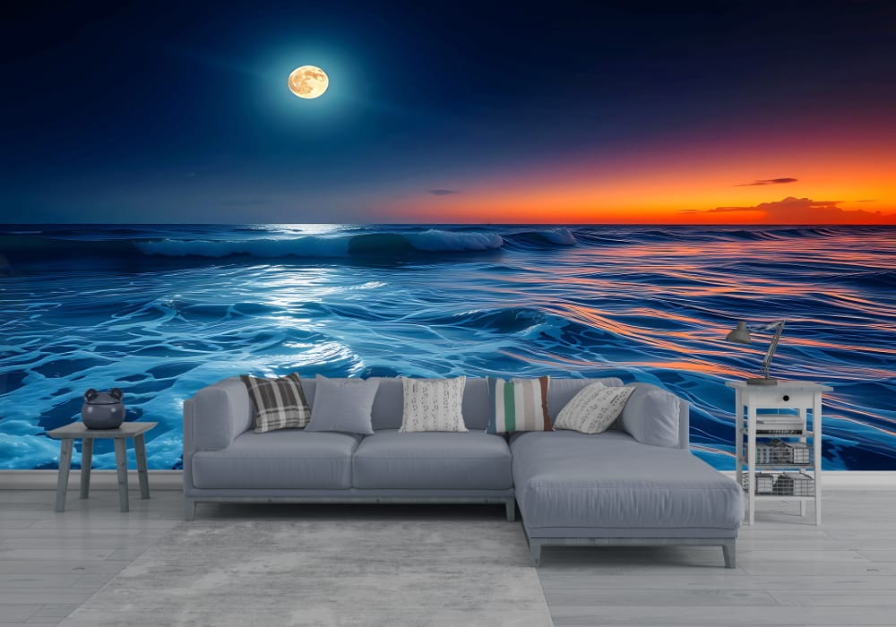 Moonlight on the Waves - AI Art Wall Mural for Contemporary Interiors