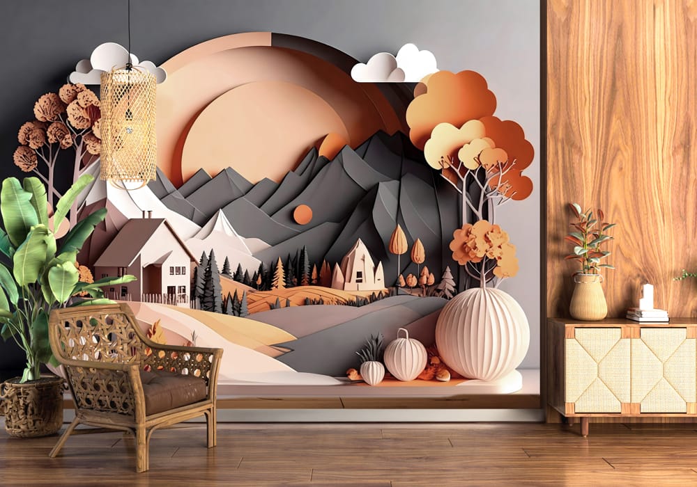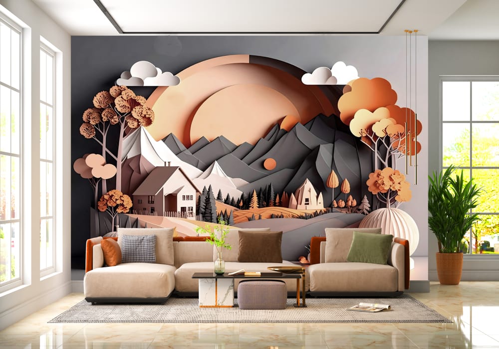 Mountain Retreat - AI Art Wall Mural for Contemporary Interiors