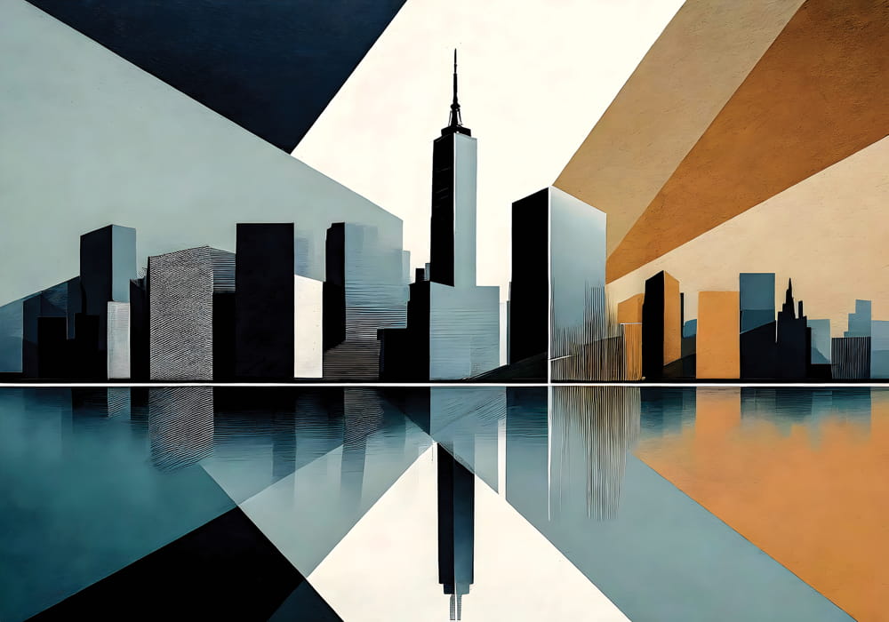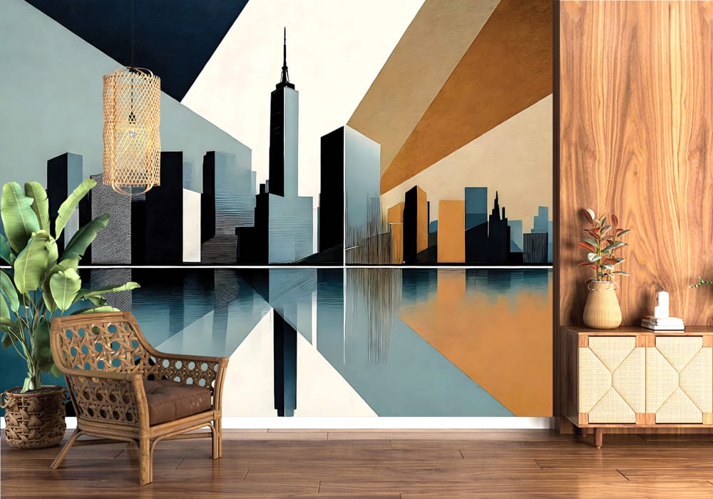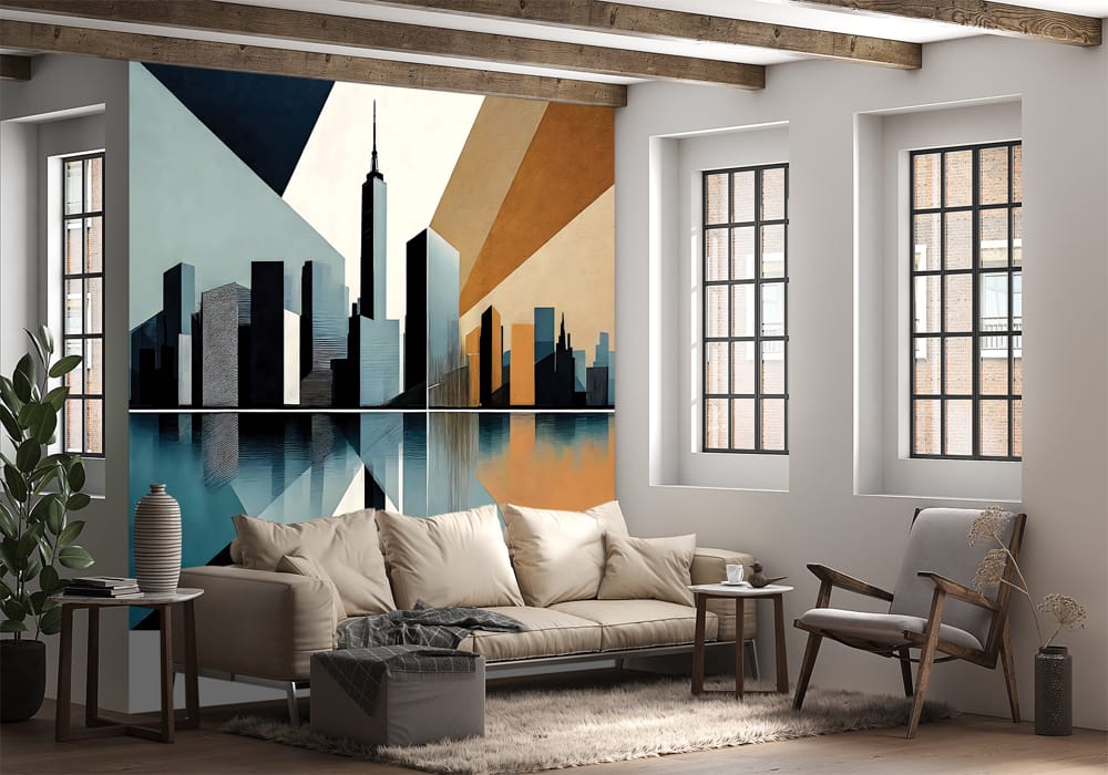 Experience the energy of the metropolis with New York Cityscape Reconstructed. This mural reinterpre..