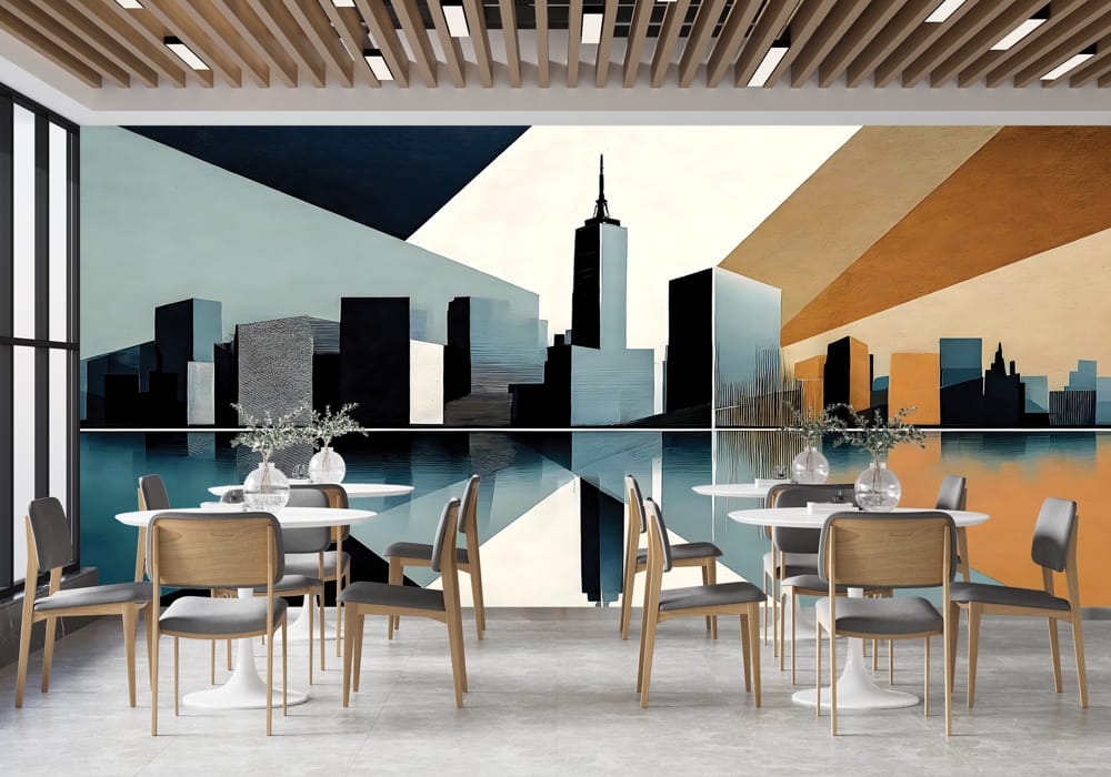 Experience the energy of the metropolis with Urban Burst. This mural reinterprets urban structure as..