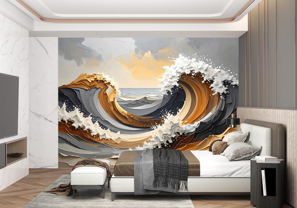 Ocean's Embrace - AI Art Wall Mural for Contemporary Interiors