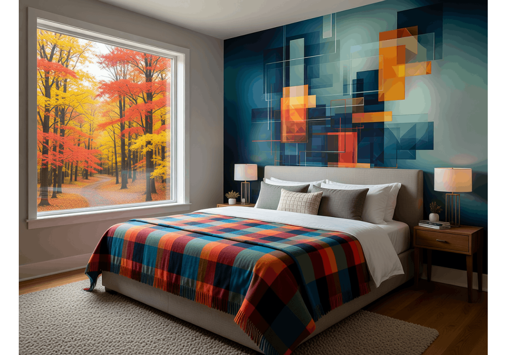 Printed on premium 130g non-woven fabric with professional matte finish and full UV protection. The material is breathable, preventing moisture buildup and keeping walls healthy.