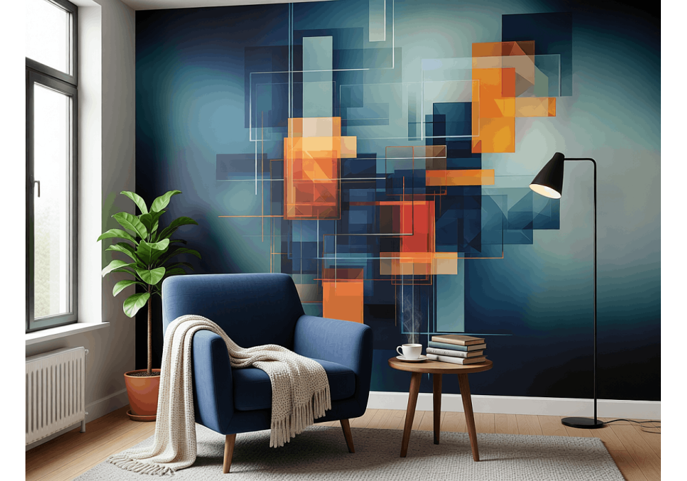 Quantum Intersections AI Wall Mural - futuristic abstract with complex layers and idealized lighting. Engineered for large walls, UV-protected, breathable fabric. Easy DIY, non-toxic, perfect for offices and studios.
