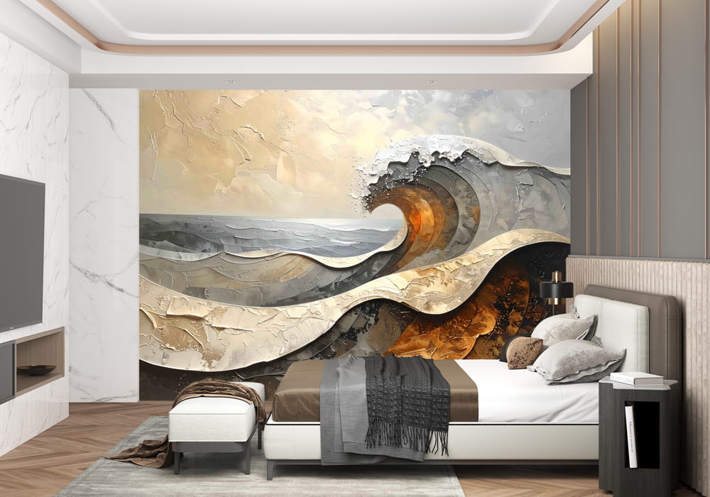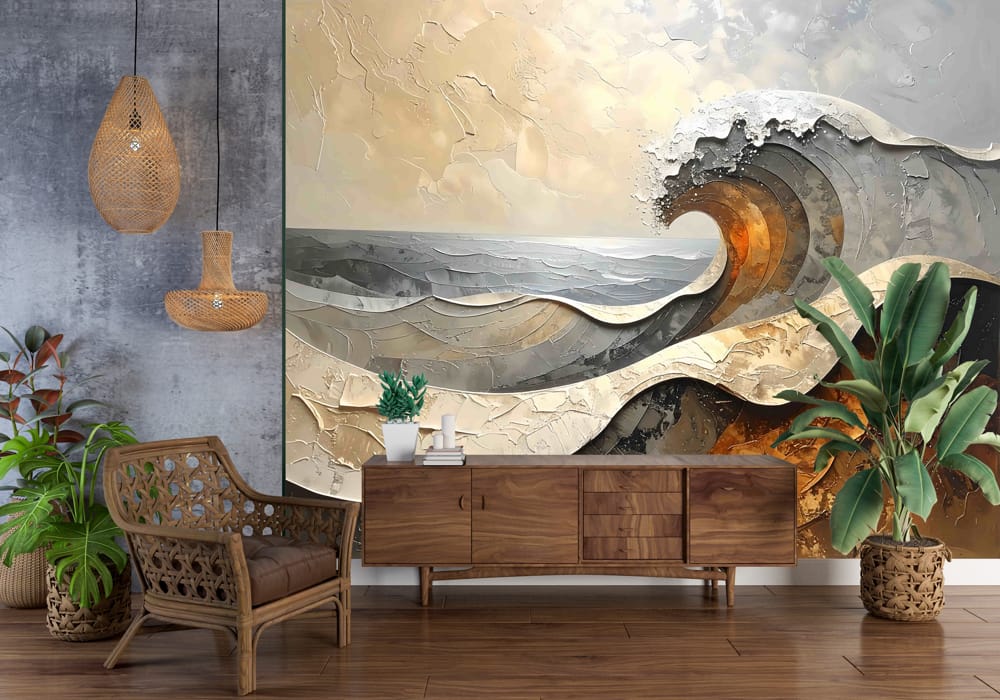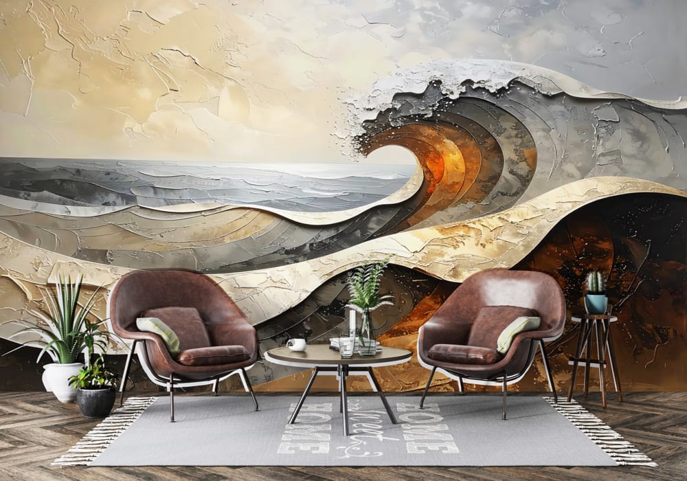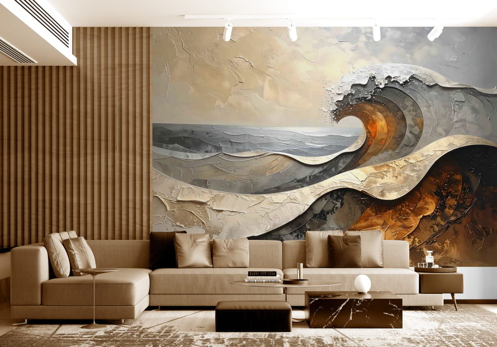 Seascape in Ochre - AI Art Wall Mural for Contemporary Interiors