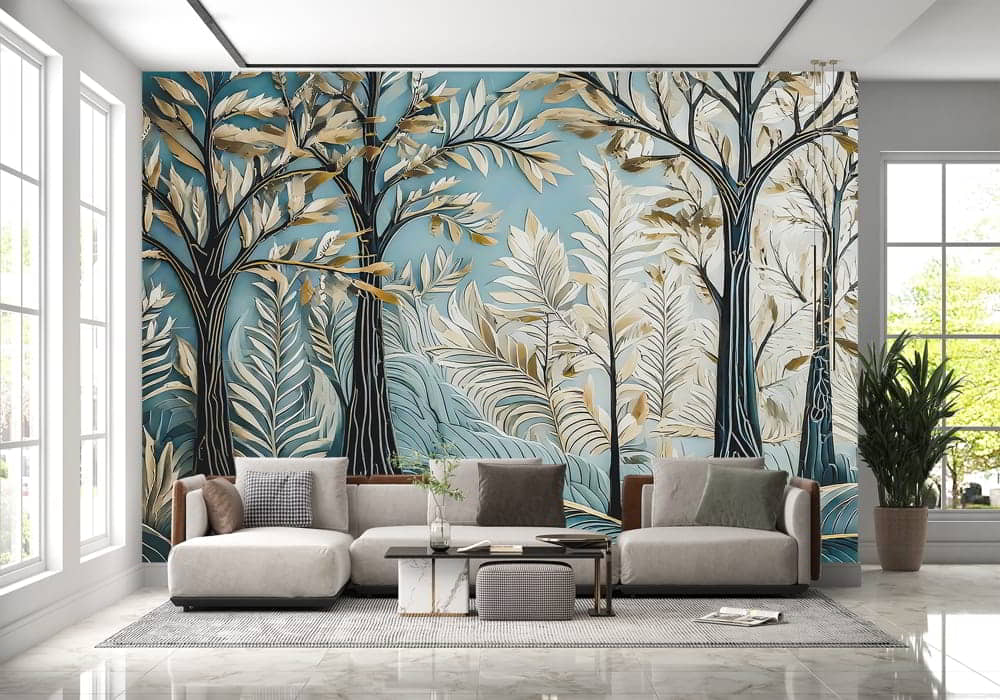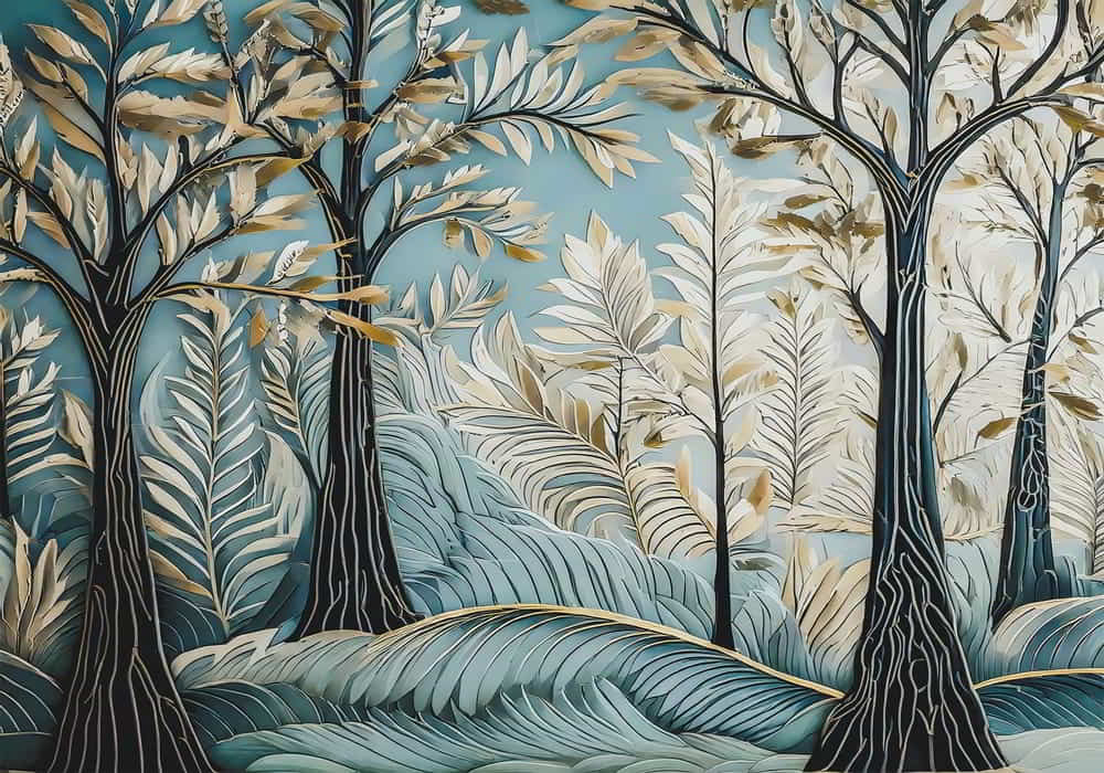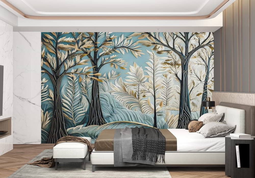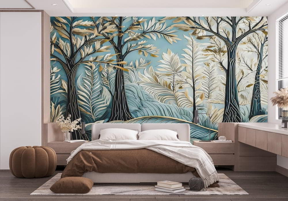 Transform your space into a serene sanctuary with Forest Gold. This design explores a botanical drea..