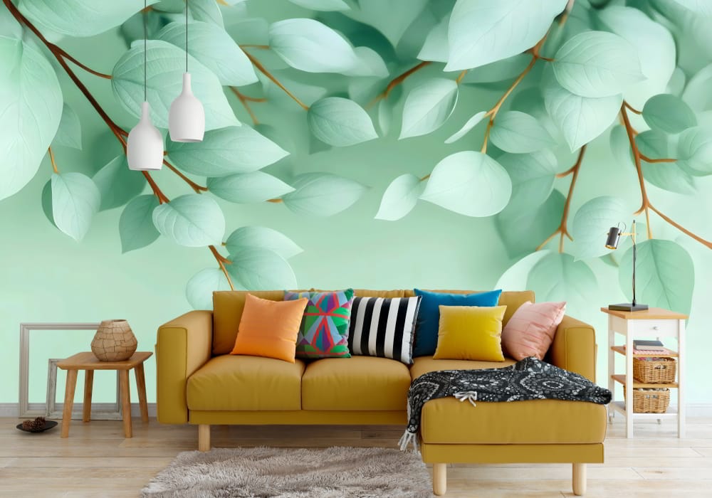 Soft Eucalyptus Serenity - AI Art Wall Mural for Contemporary Interiors
