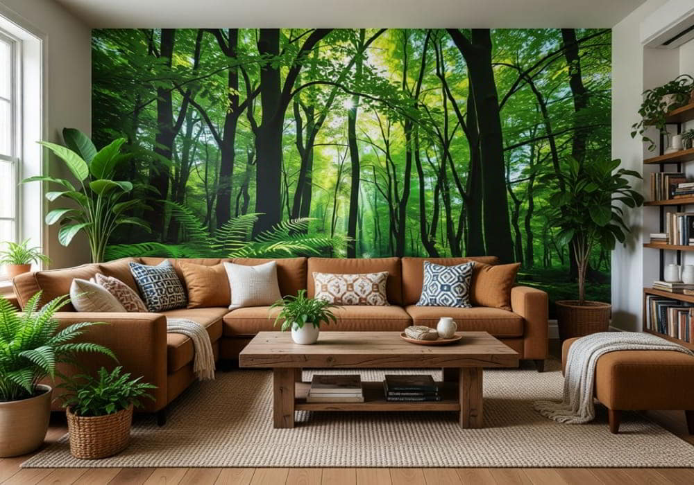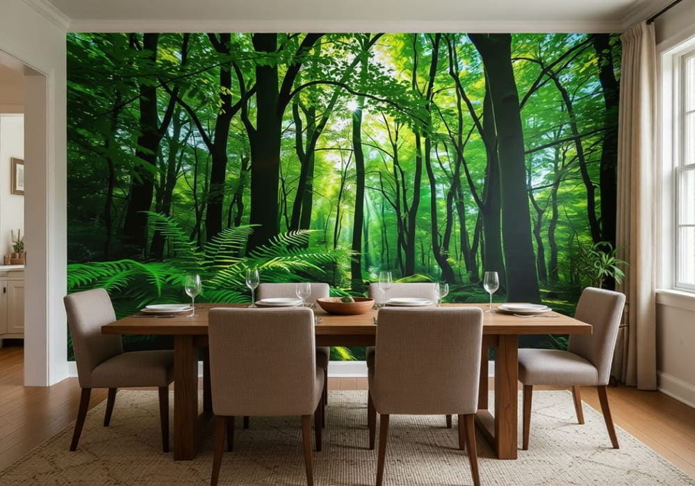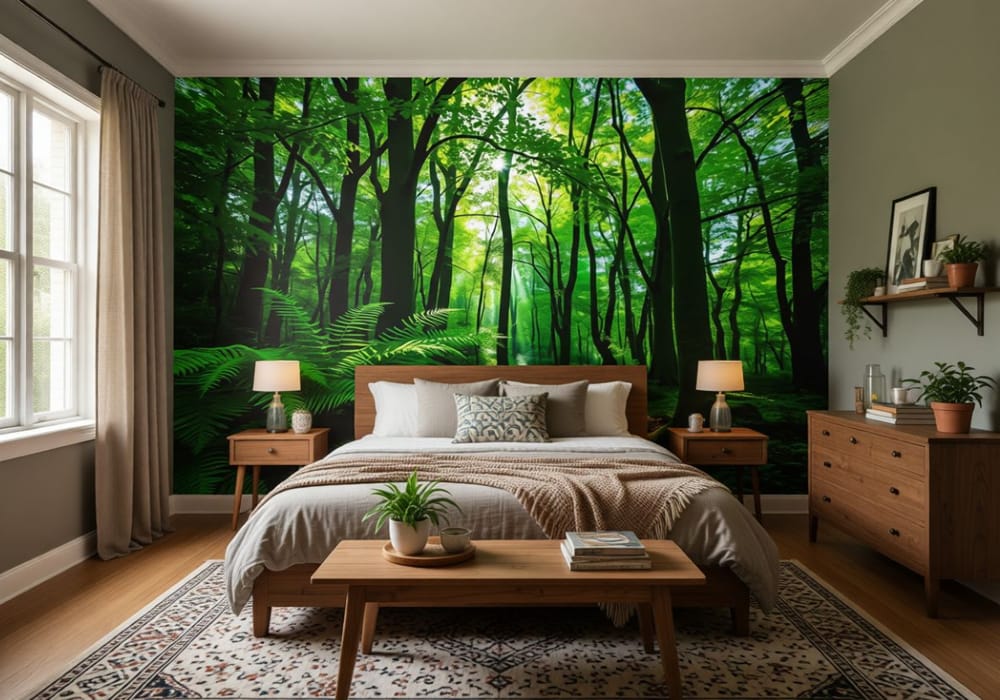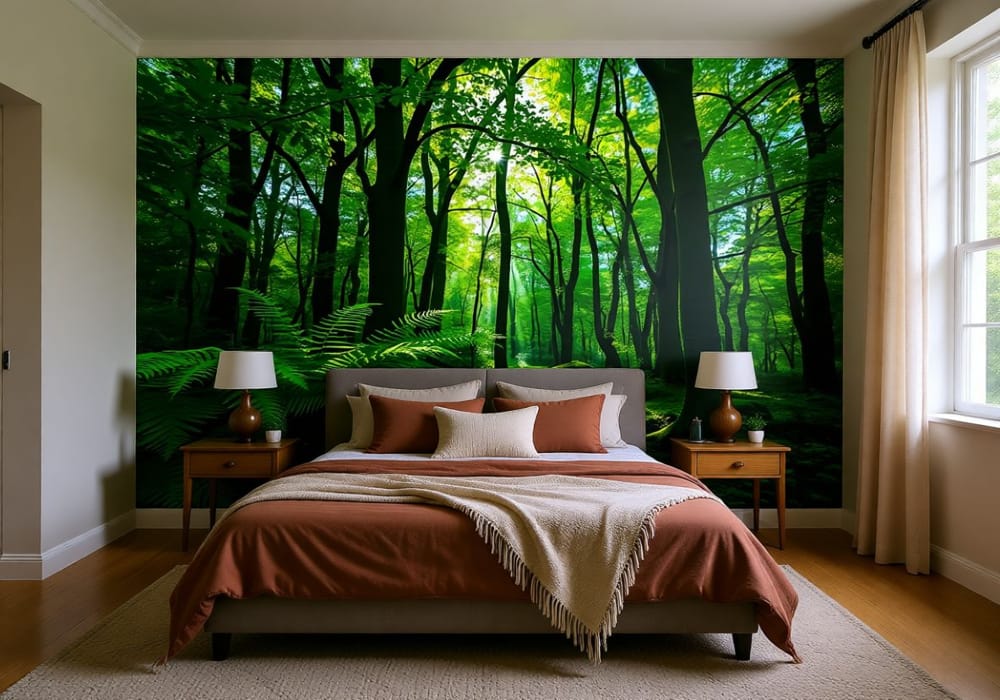 Transform your space into a serene sanctuary with Serene Forest. This design explores a botanical dr..
