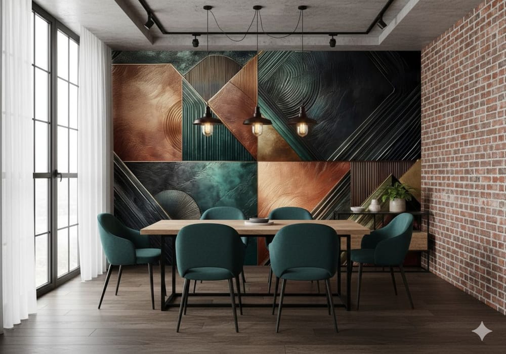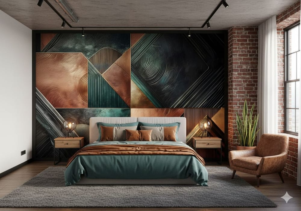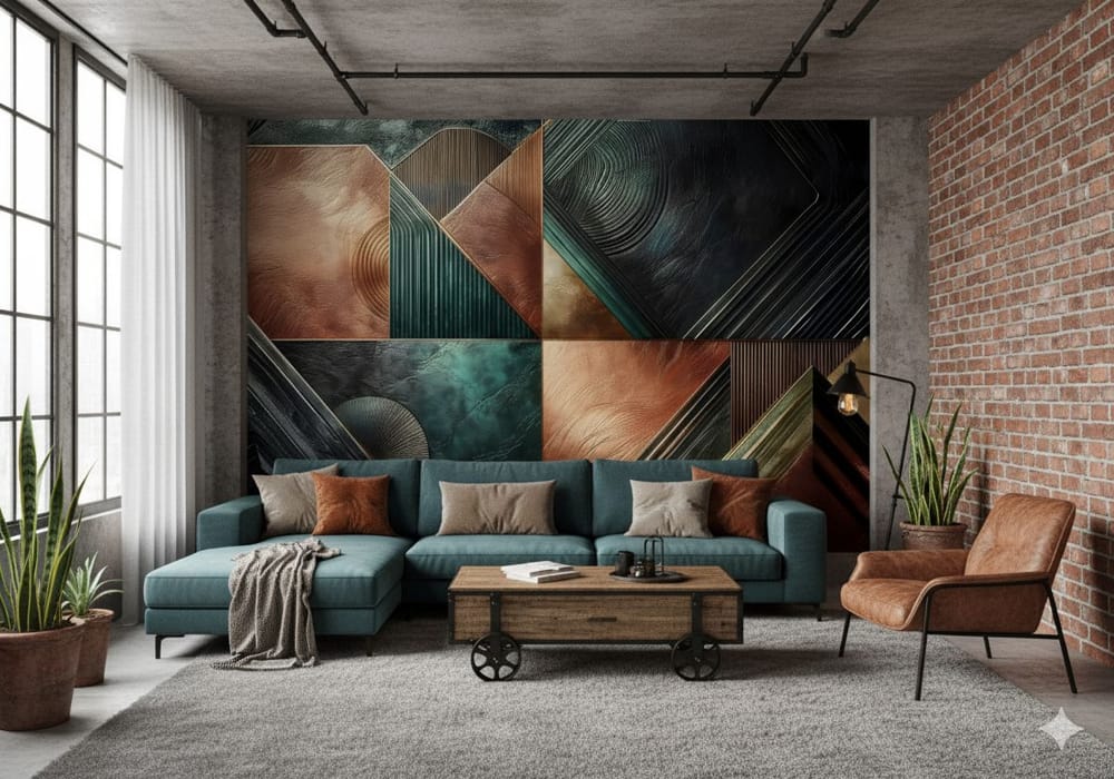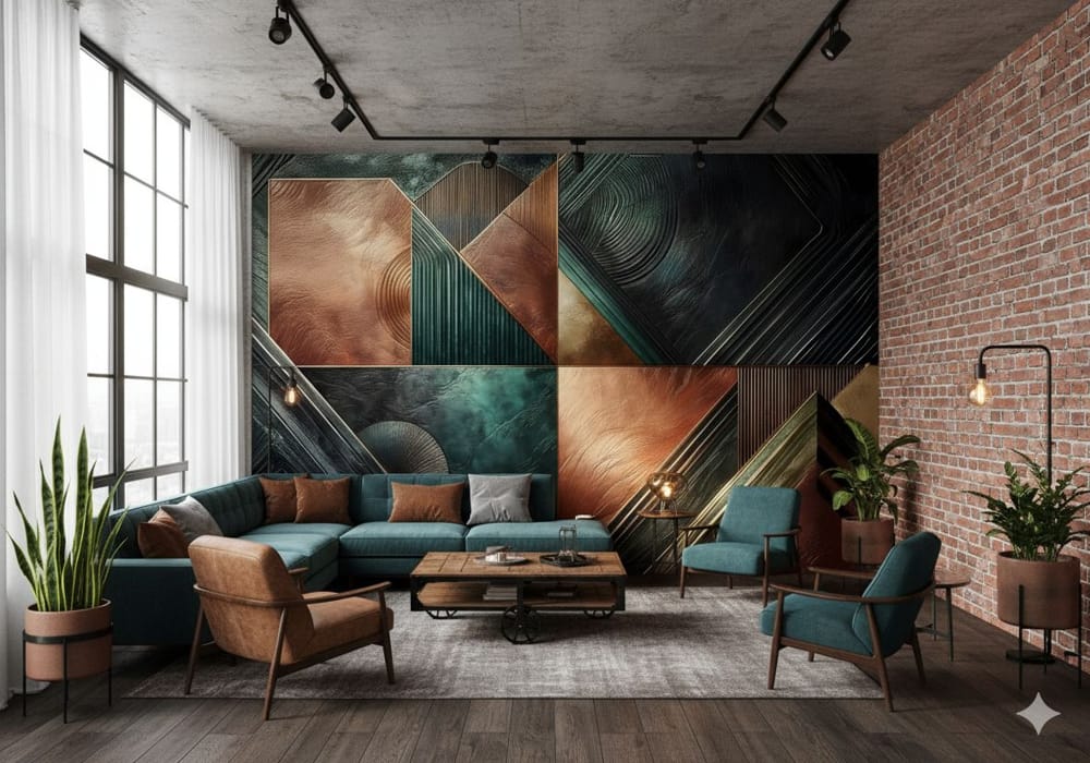 The Copper and Teal Quilt Textured Design - Warm AI Wall Mural